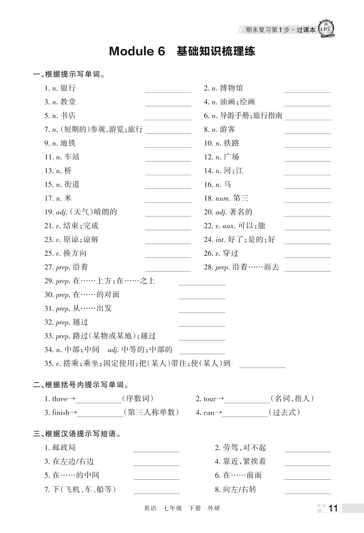 王朝霞期末过课本——Module 6 基础知识梳理练七年级下册英语(外研版)