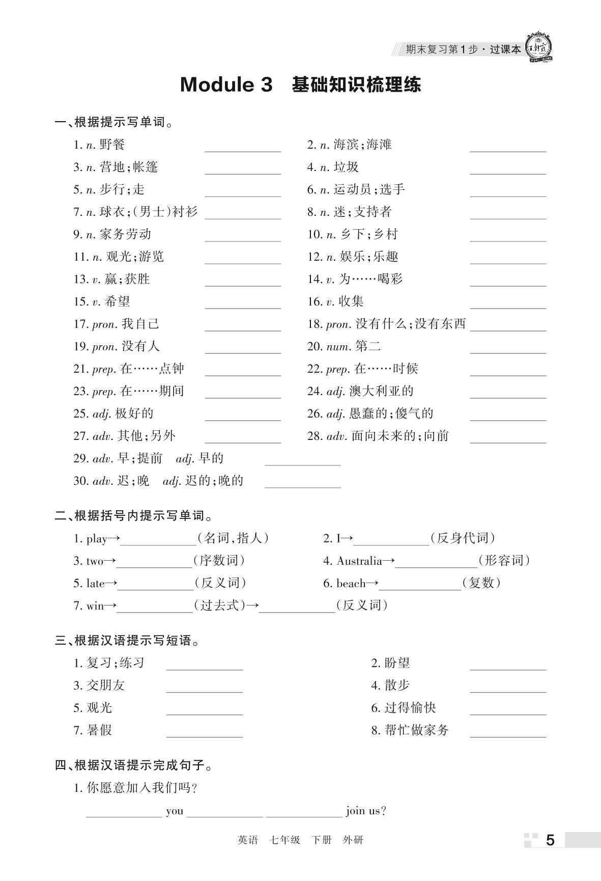 王朝霞期末过课本——Module 3 基础知识梳理练七年级下册英语(外研版)
