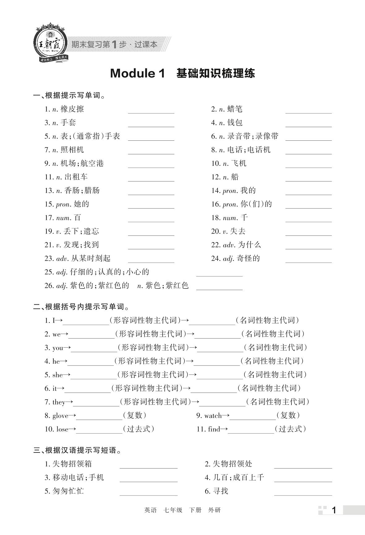 王朝霞期末过课本——Module 1 基础知识梳理练七年级下册英语(外研版)