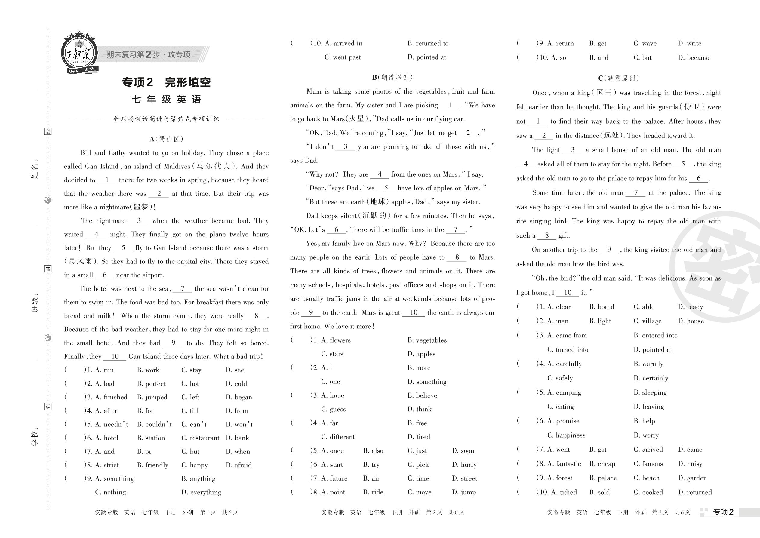 王朝霞期末专项卷——完形填空七年级下册英语(外研版)【2】
