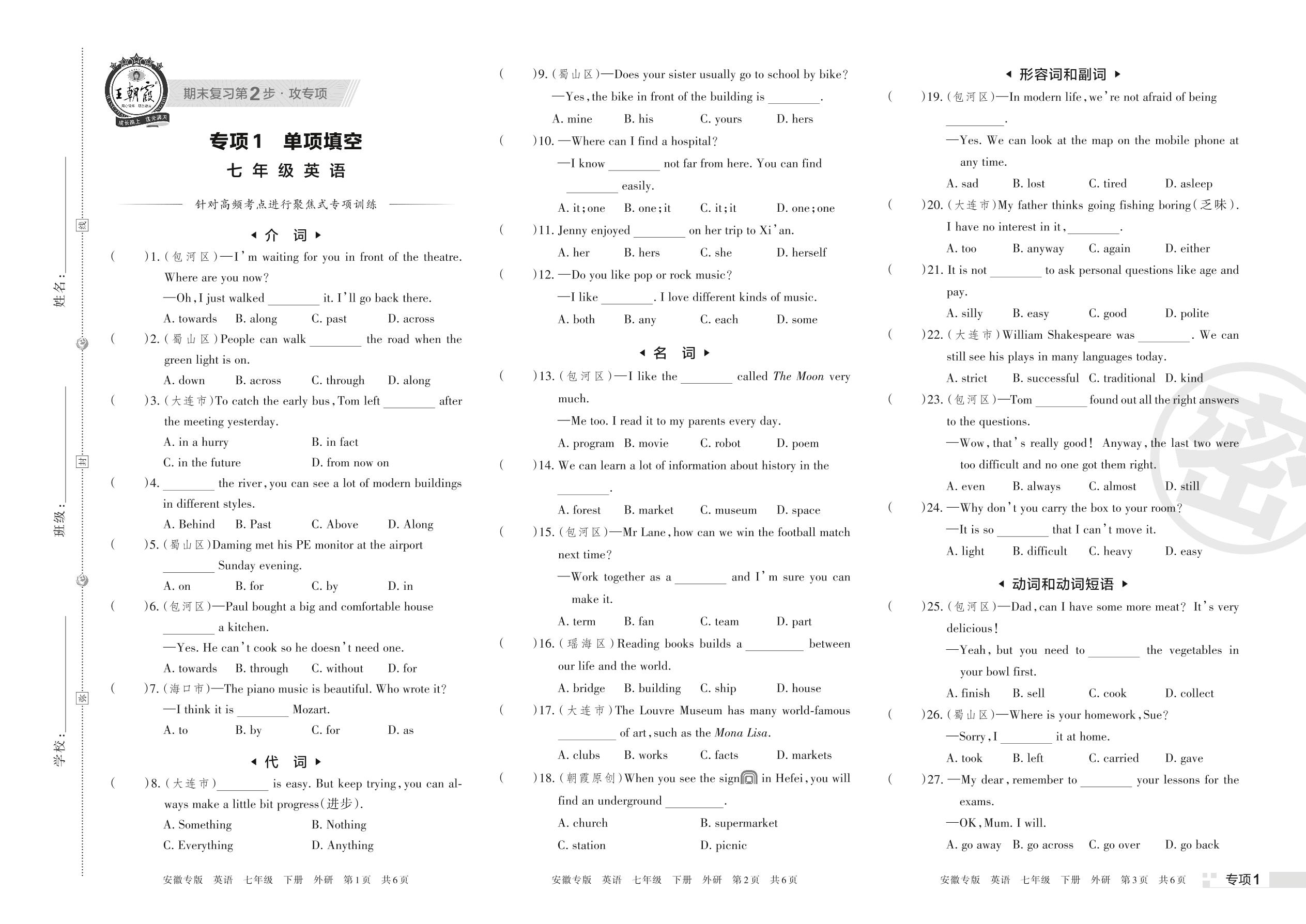 王朝霞期末专项卷——单项填空七年级下册英语(外研版)【1】