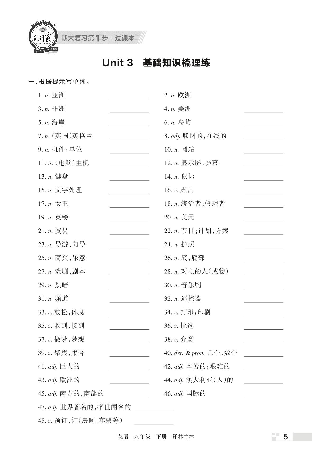 王朝霞期末过课本——Unit 3 基础知识梳理练八年级下册英语(译林牛津版)
