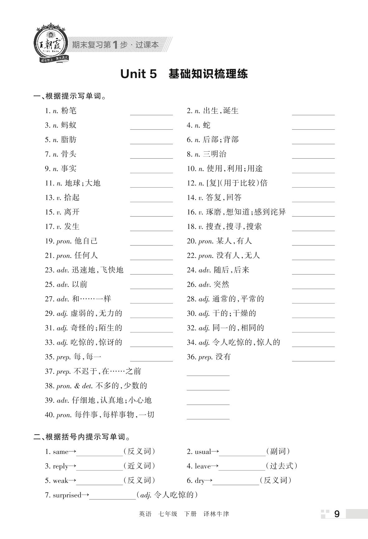 王朝霞期末过课本——Unit 5 基础知识梳理练七年级下册英语(译林牛津版)
