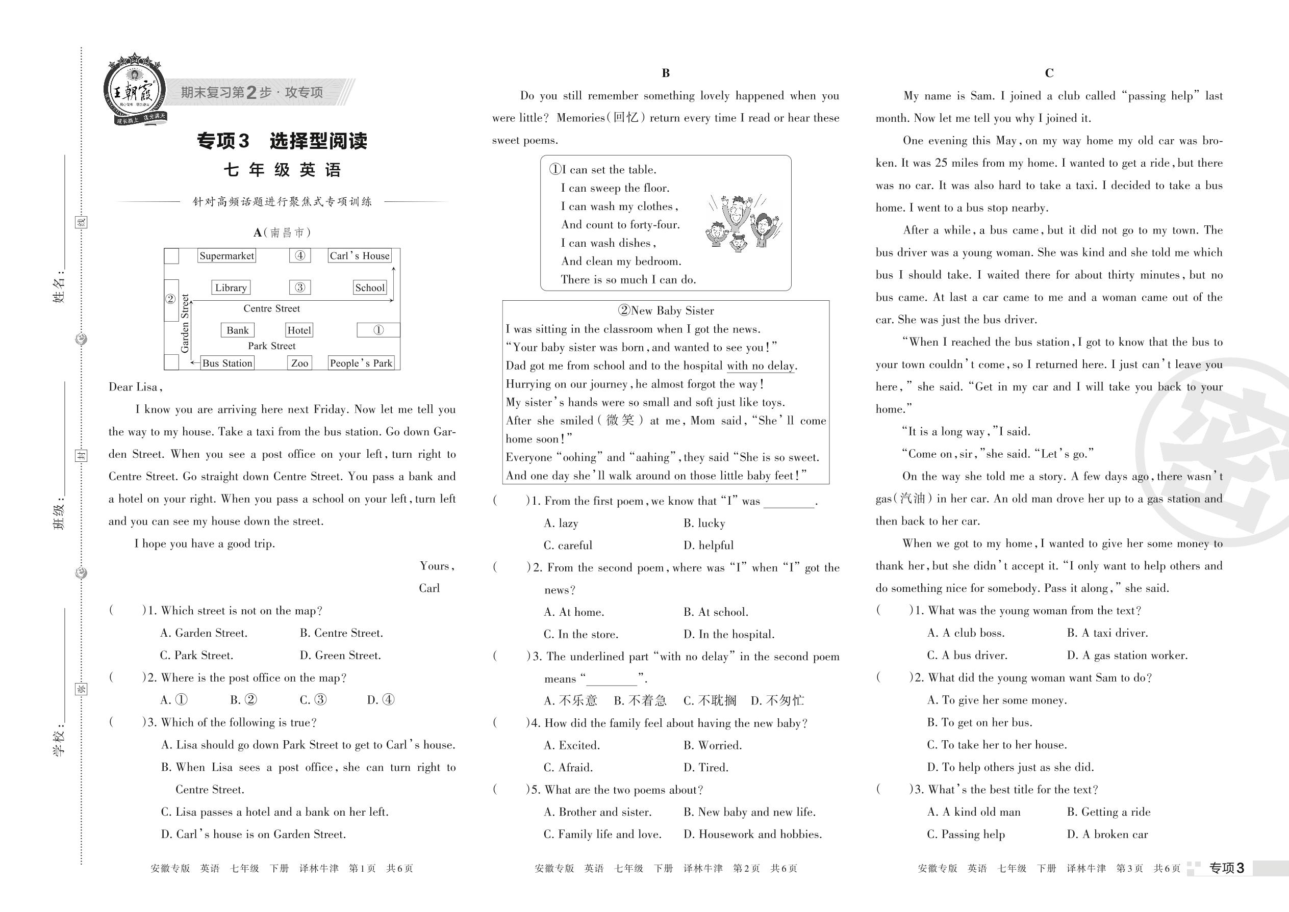 王朝霞期末专项卷——选择型阅读七年级下册英语(译林牛津版)【3】