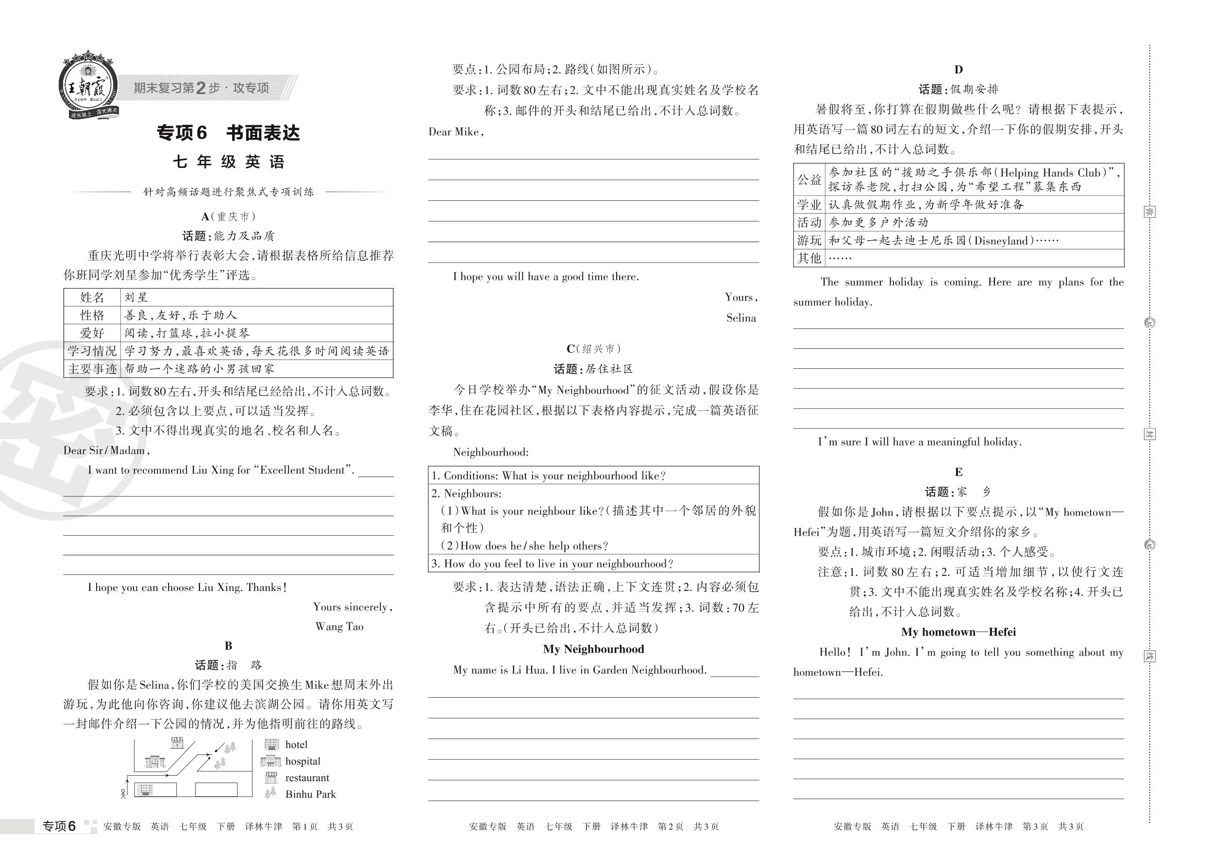 王朝霞期末专项卷——书面表达七年级下册英语(译林牛津版)【6】