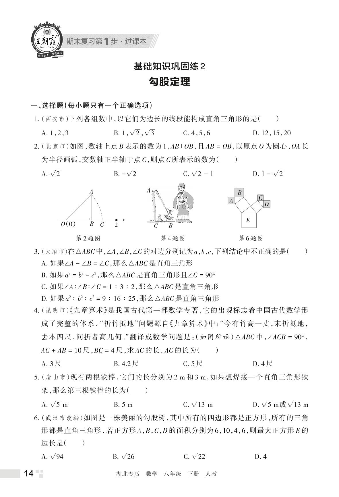 王朝霞期末过课本——基础知识巩固练2 勾股定理八年级下册数学(人教版)_R220319100950024
