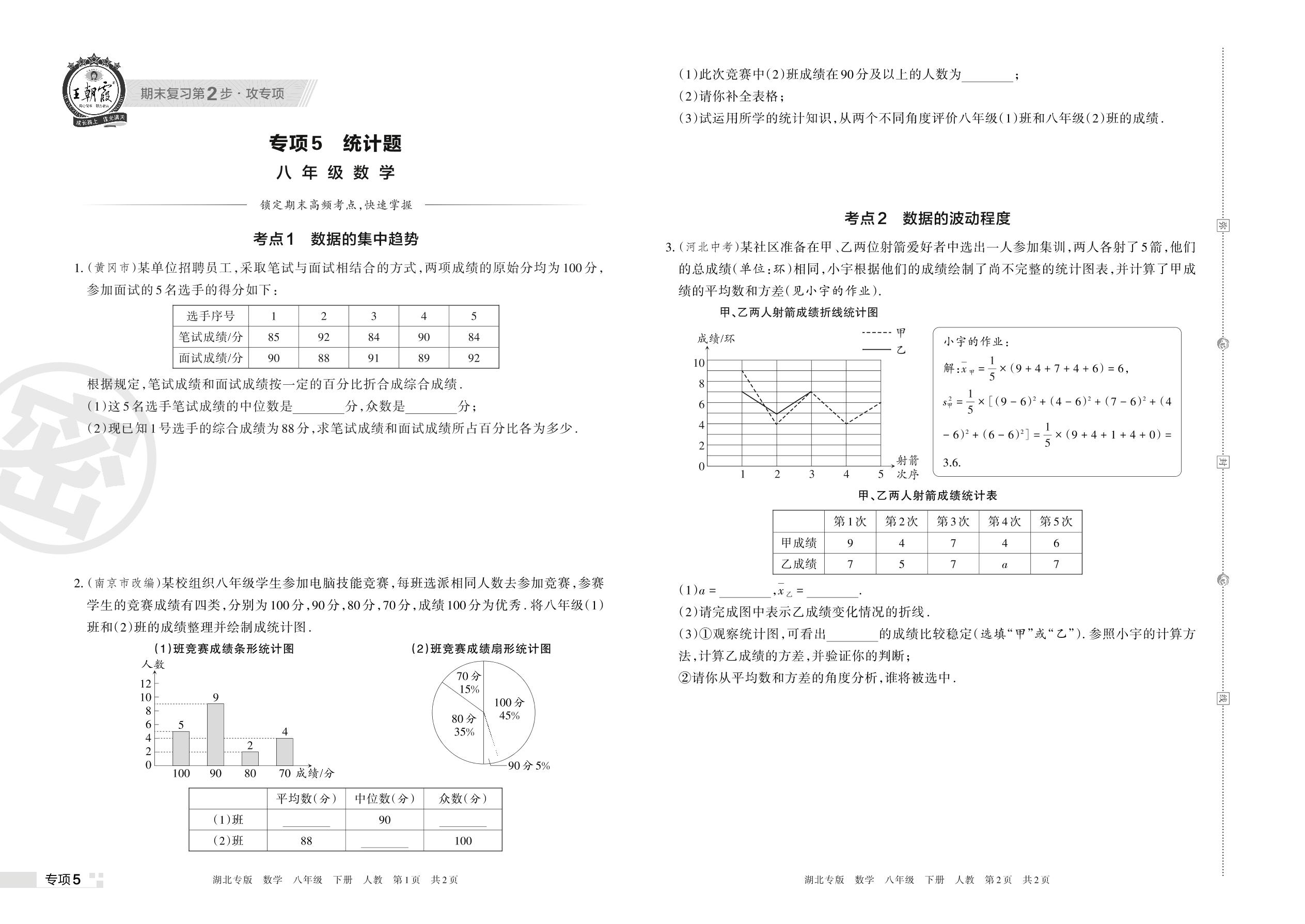 王朝霞期末专项卷——统计题八年级下册数学(人教版)_R220319100951999【5】