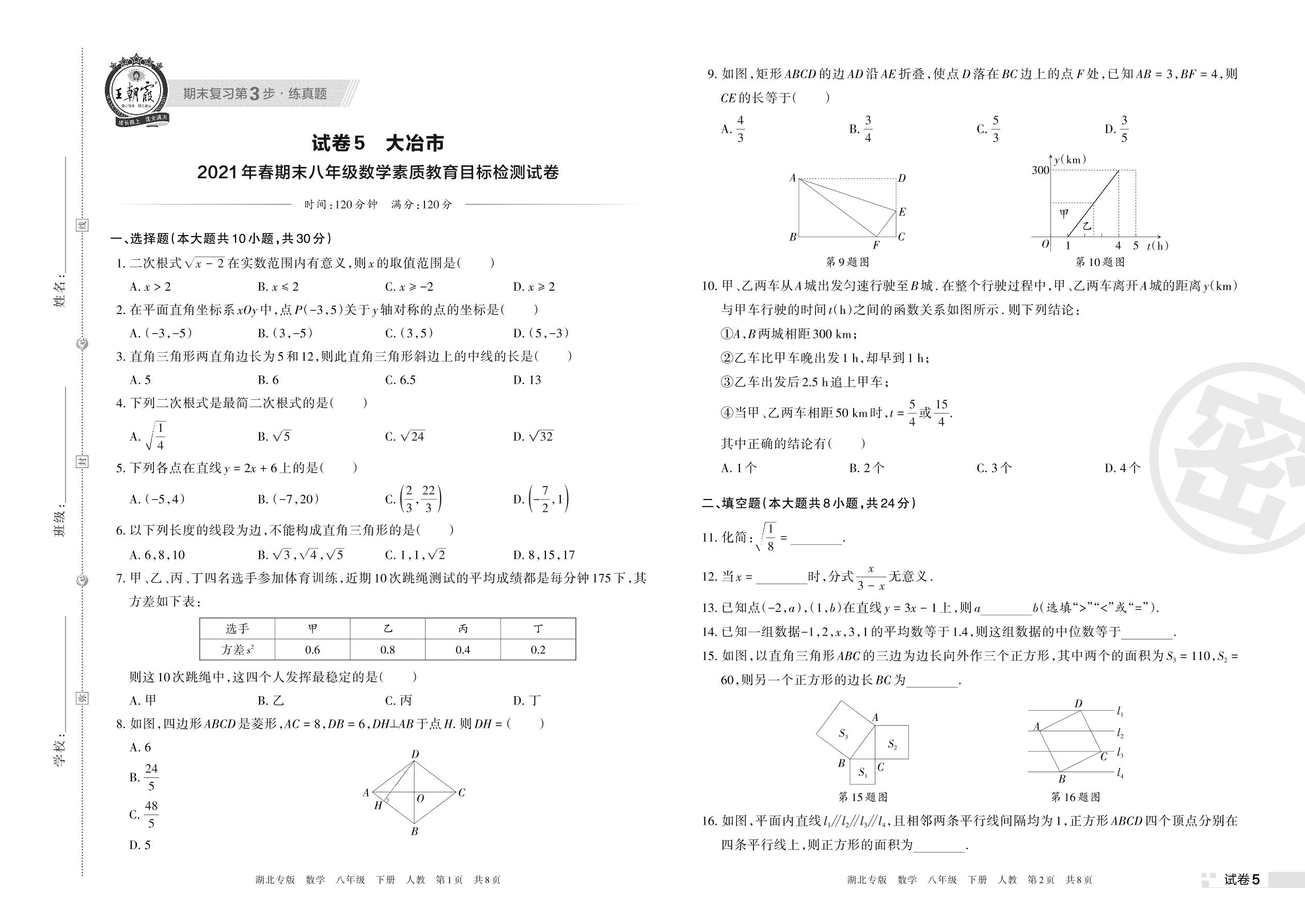 大冶市2021年春期末八年级数学素质教育目标检测试卷(人教版)【5】