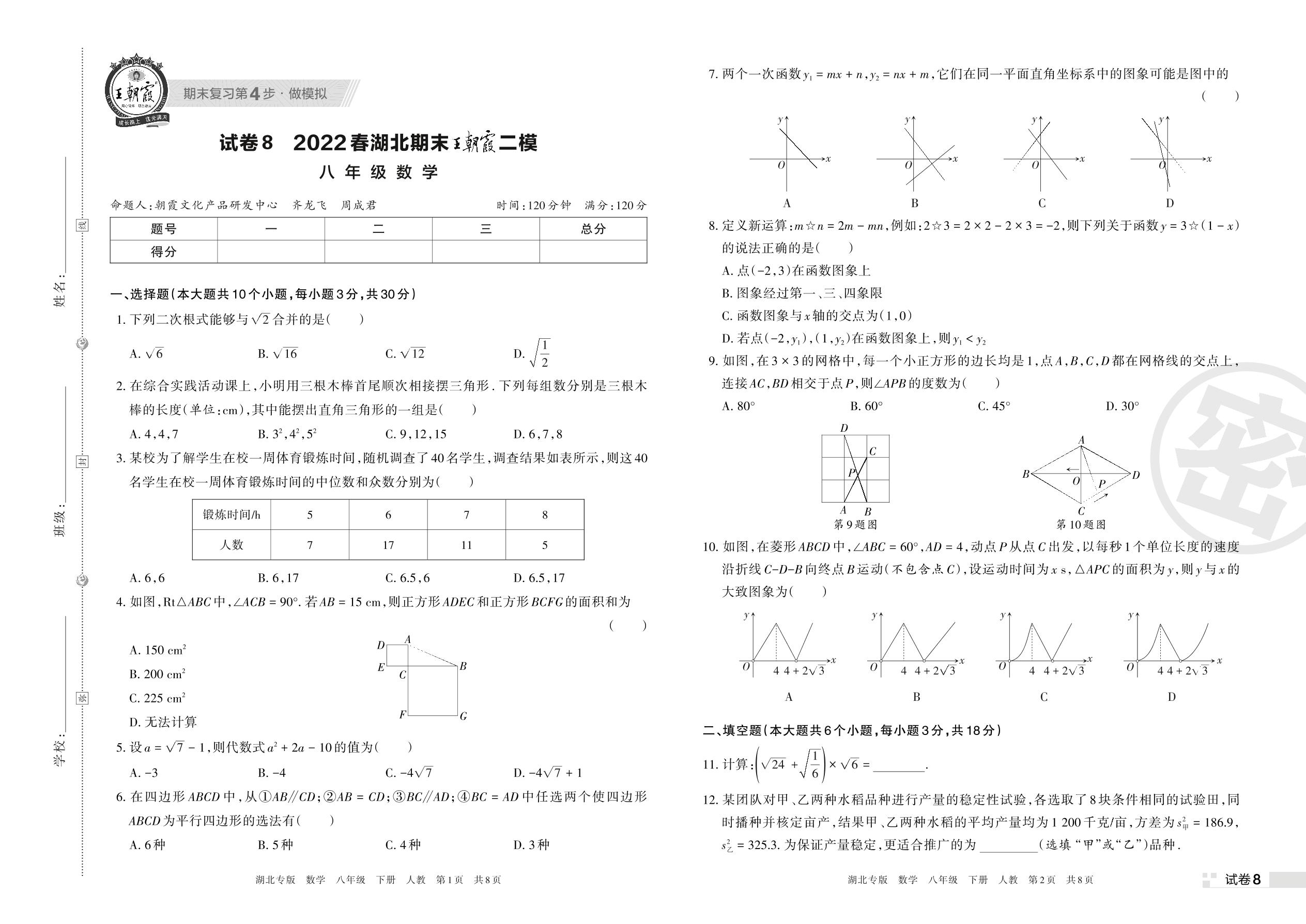 王朝霞期末模拟卷八年级下册数学(人教版)_R220319100952452【8】