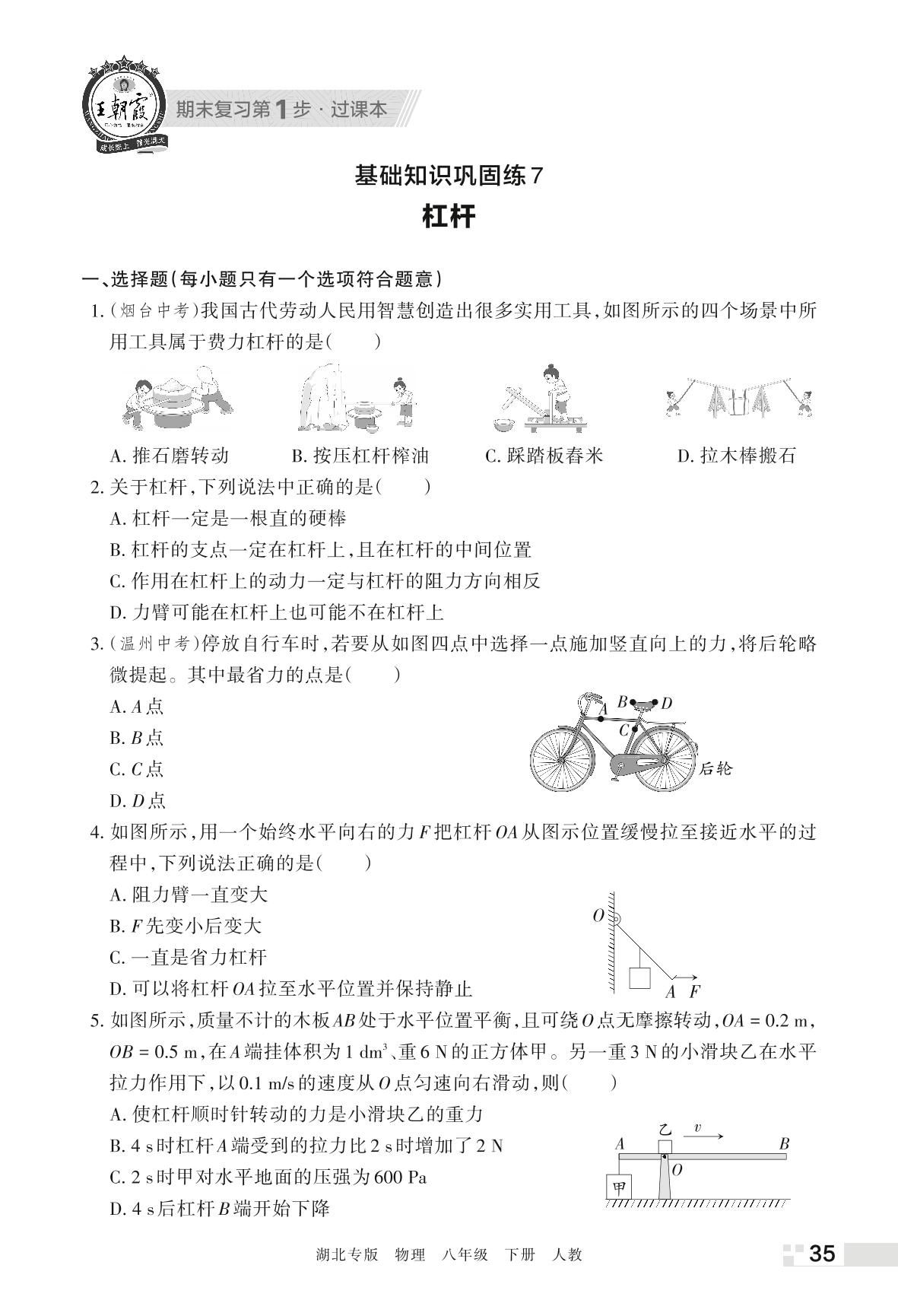 王朝霞期末过课本——基础知识巩固练7 杠杆八年级下册物理(人教版)_R220319102204336