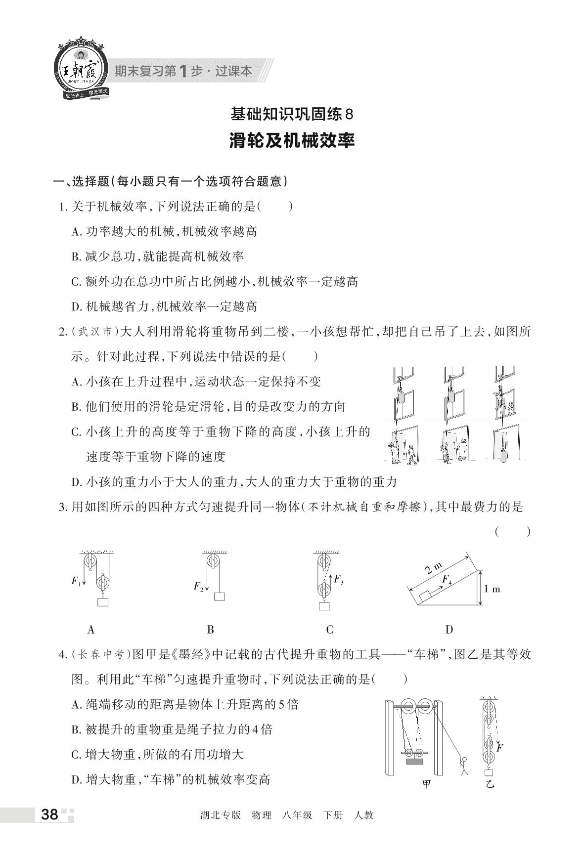 王朝霞期末过课本——基础知识巩固练8 滑轮及机械效率八年级下册物理(人教版)_R220319102205696