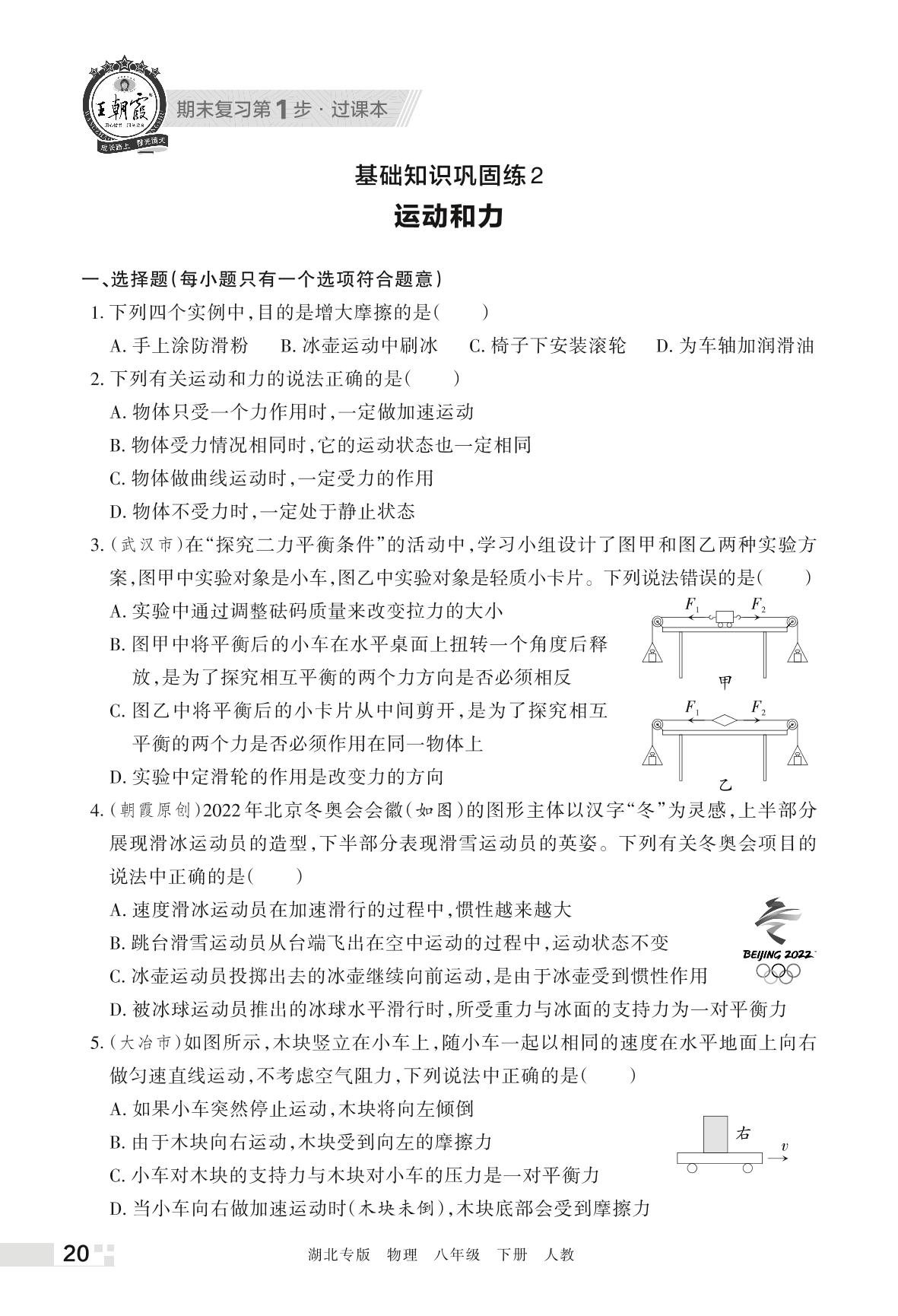 王朝霞期末过课本——基础知识巩固练2 运动和力八年级下册物理(人教版)_R220319102205056