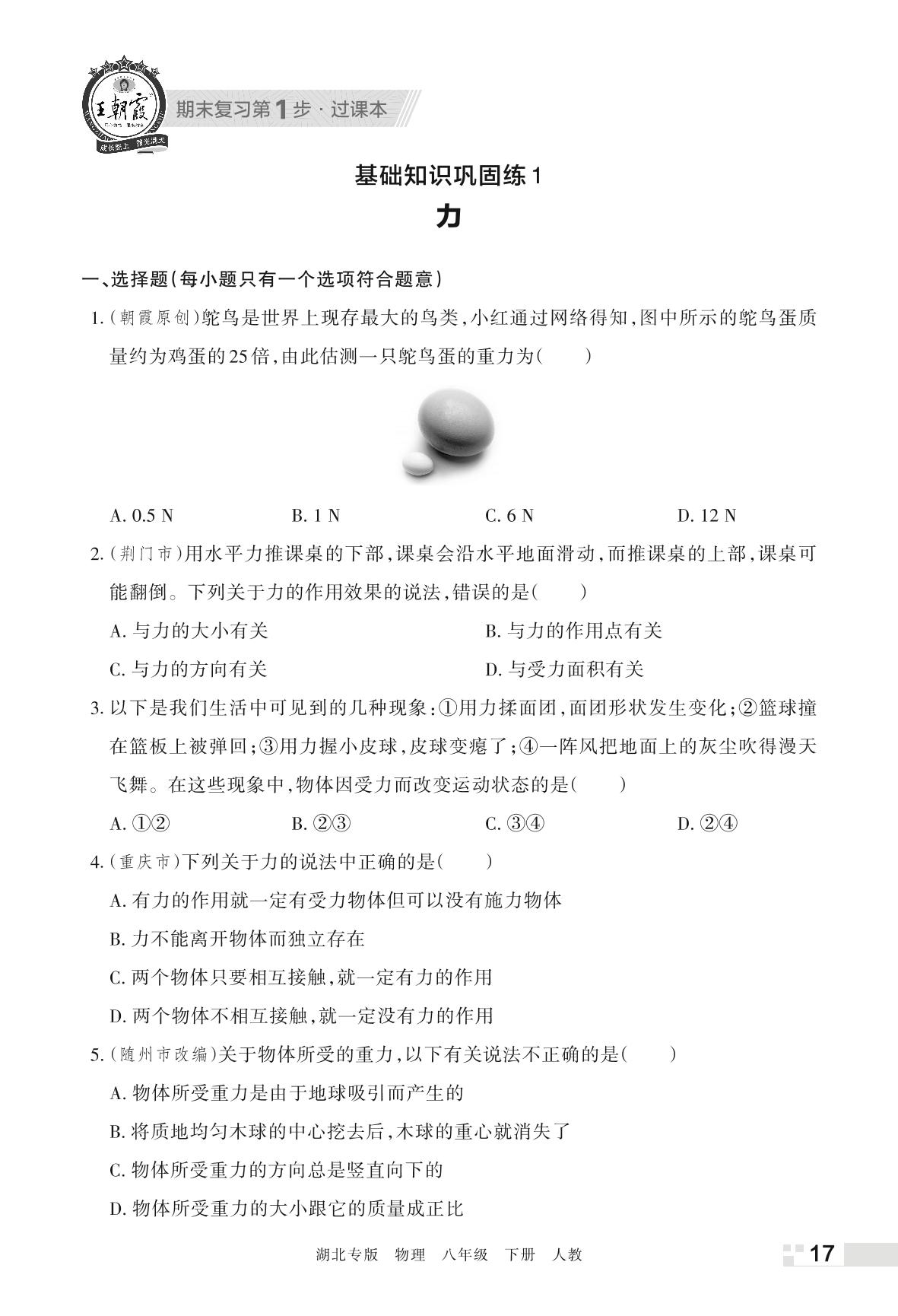 王朝霞期末过课本——基础知识巩固练1 力八年级下册物理(人教版)_R220319102205193
