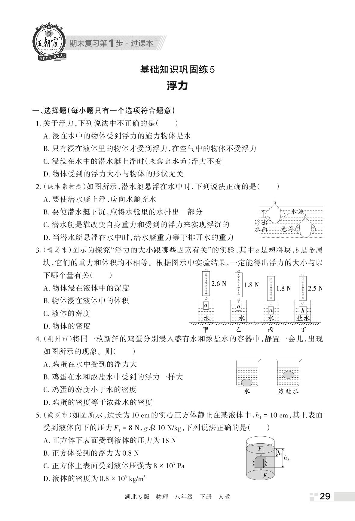王朝霞期末过课本——基础知识巩固练5 浮力八年级下册物理(人教版)_R220319102205492