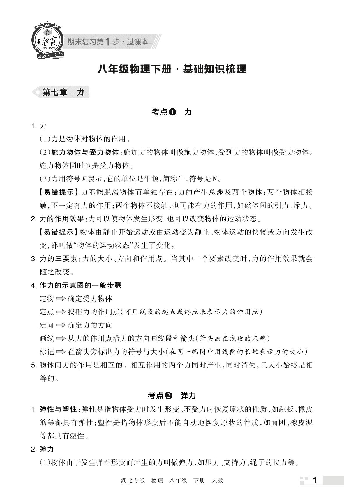 王朝霞期末过课本——基础知识梳理八年级下册物理(人教版)_R220319102206283
