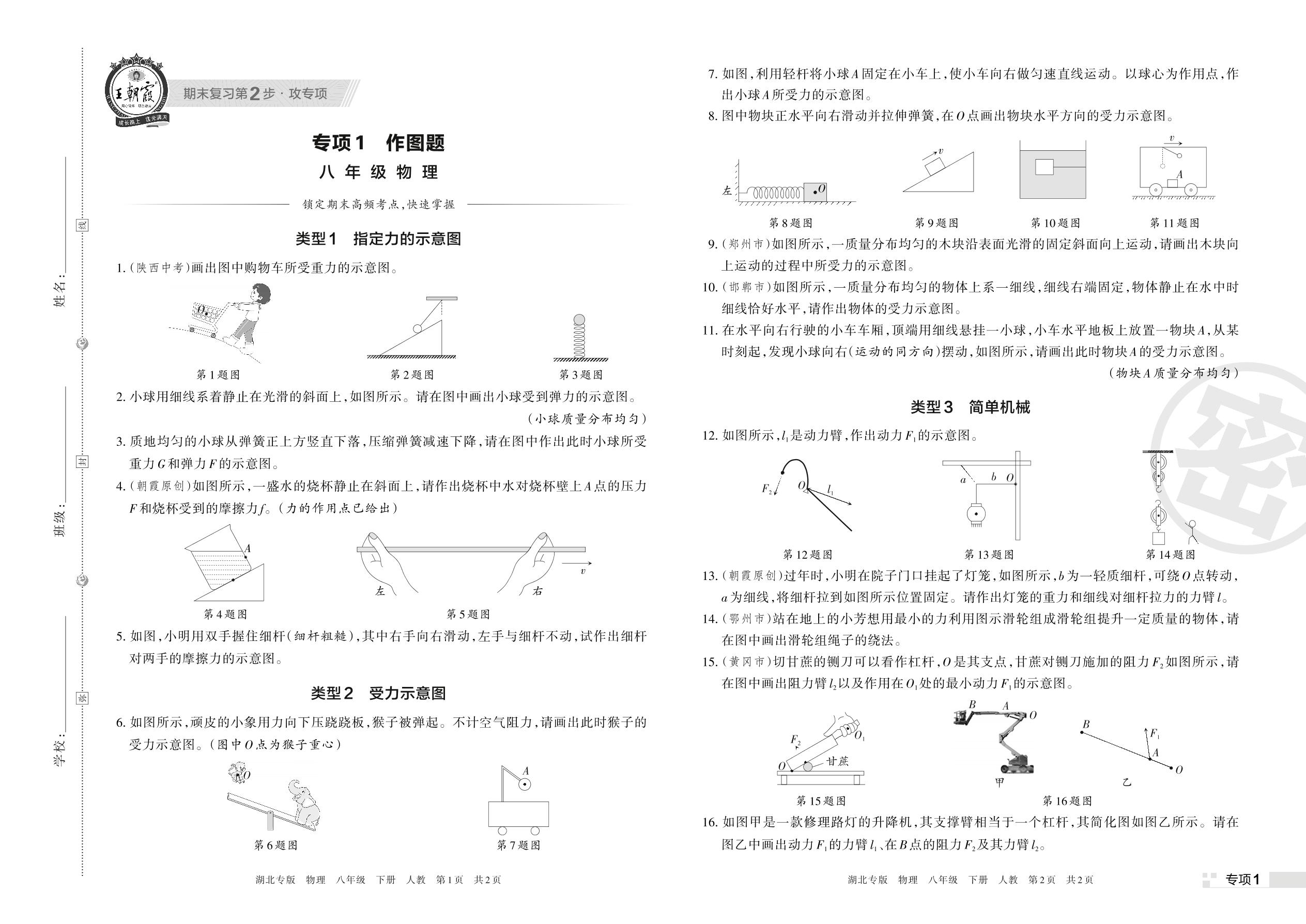 王朝霞期末专项卷——作图题八年级下册物理(人教版)_R220319102206125【1】