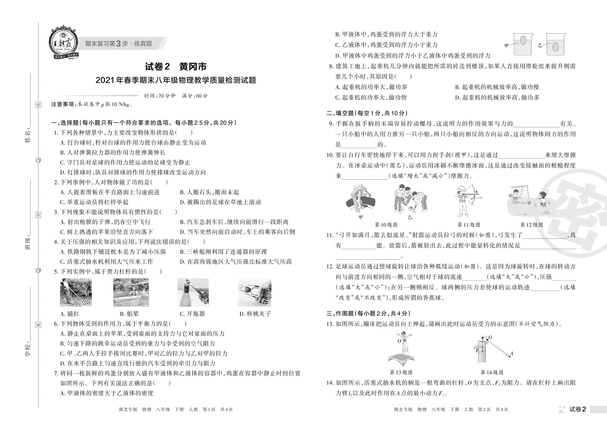 八年级物理人教版下册期末卷