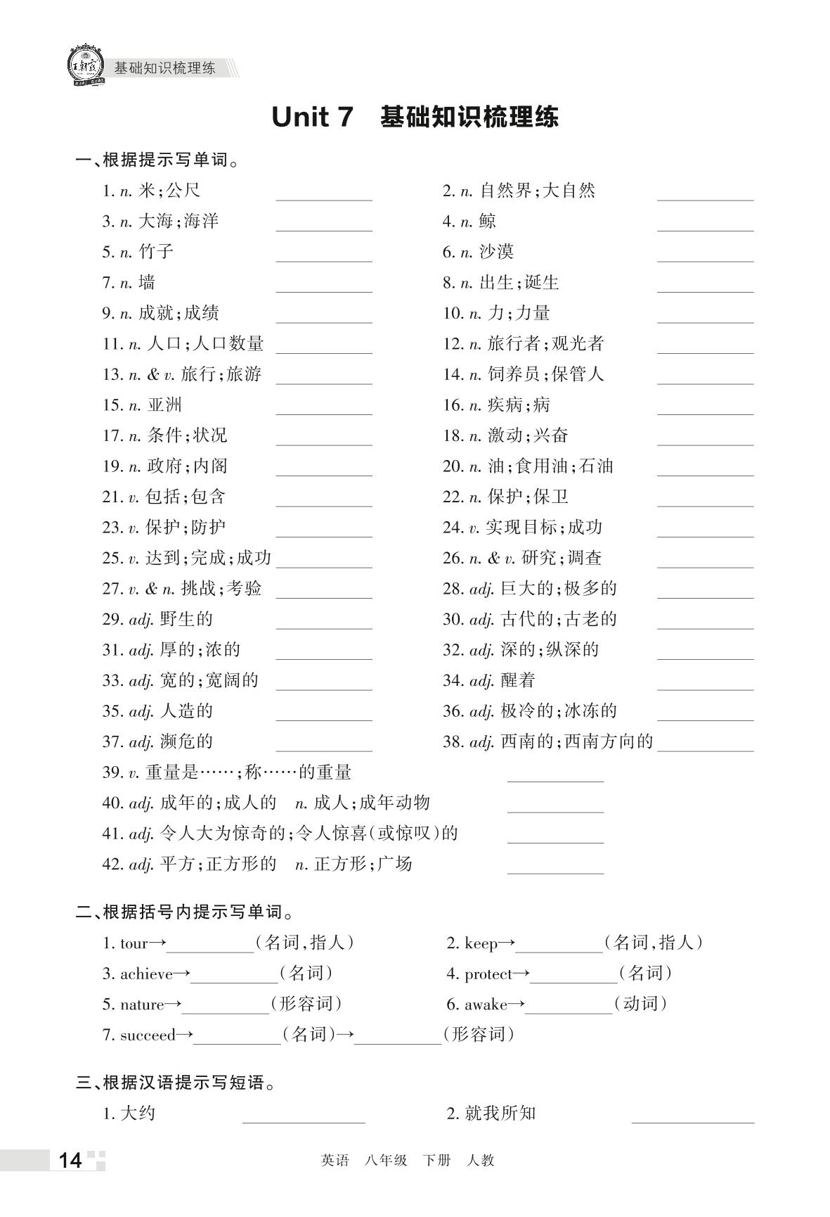 王朝霞期末过课本——Unit 7 基础知识梳理练八年级下册英语(人教版)_R220319104522185