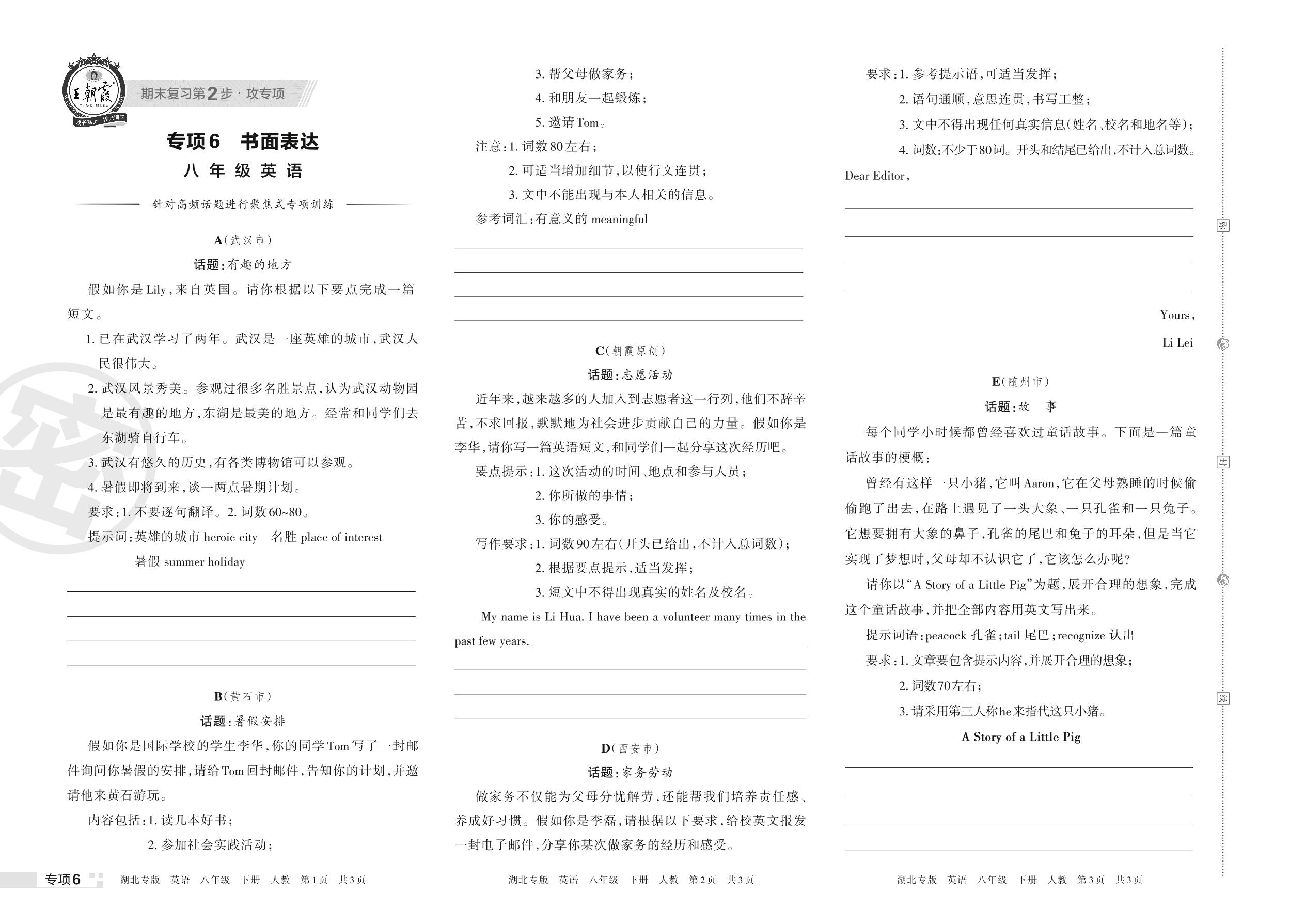 王朝霞期末专项卷——书面表达八年级下册英语(人教版)_R220319104523358【6】