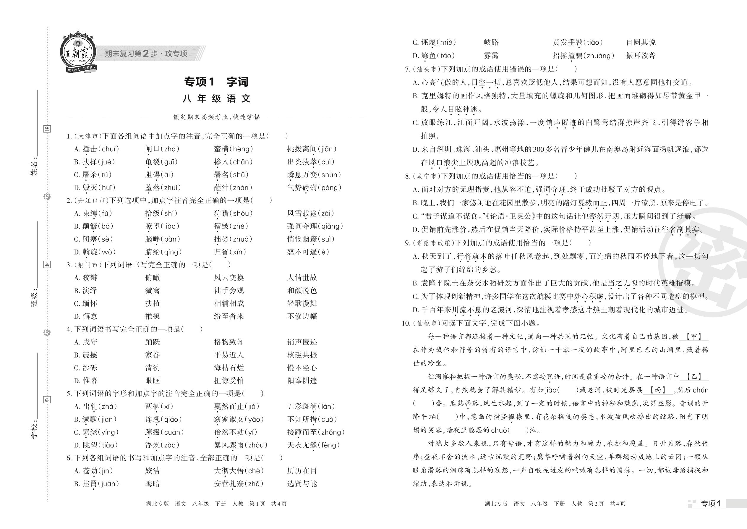 王朝霞期末专项卷——字词八年级下册语文(人教版)【1】