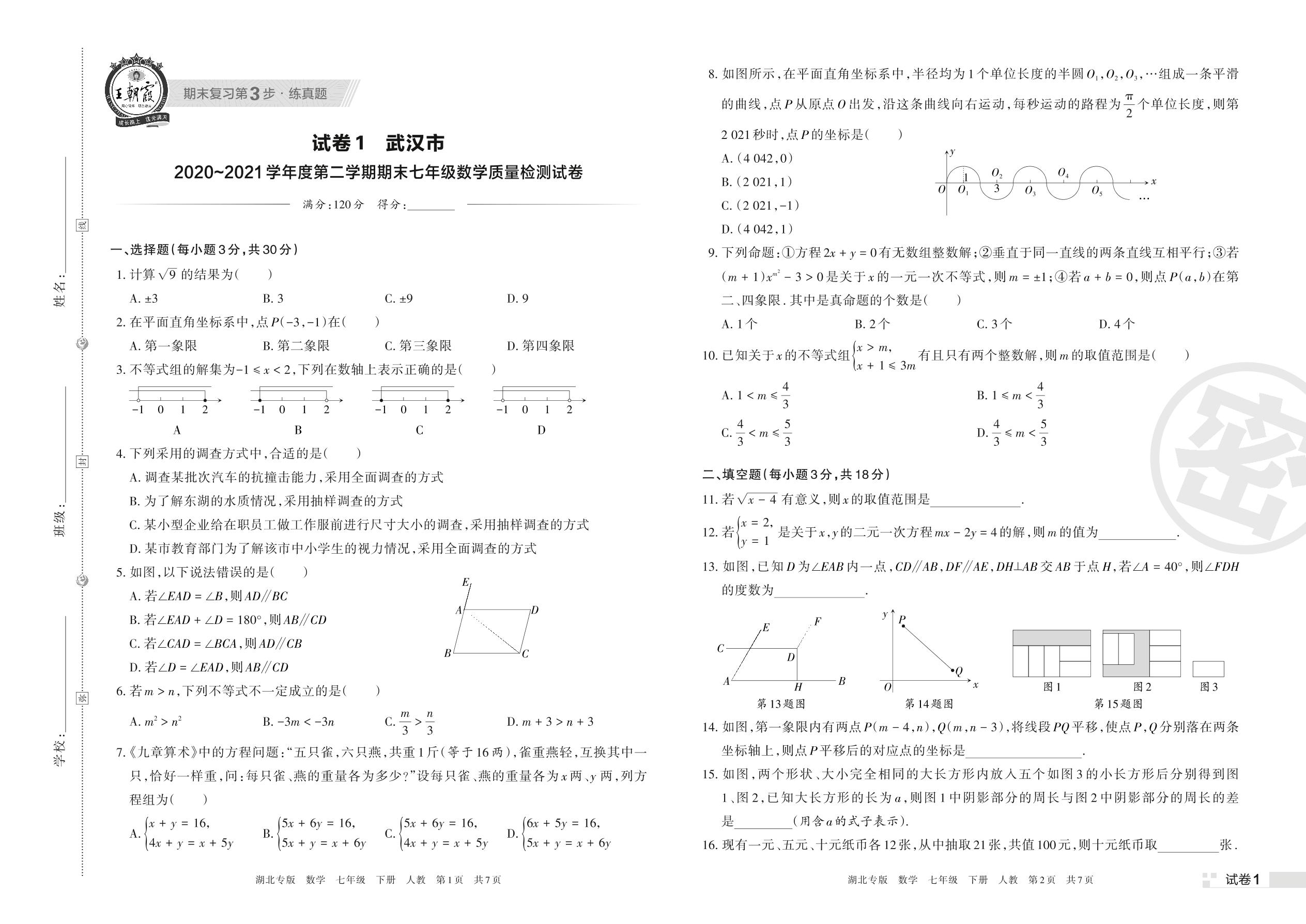 武汉市2020~2021学年度第二学期期末七年级数学质量检测试卷(人教版)【1】