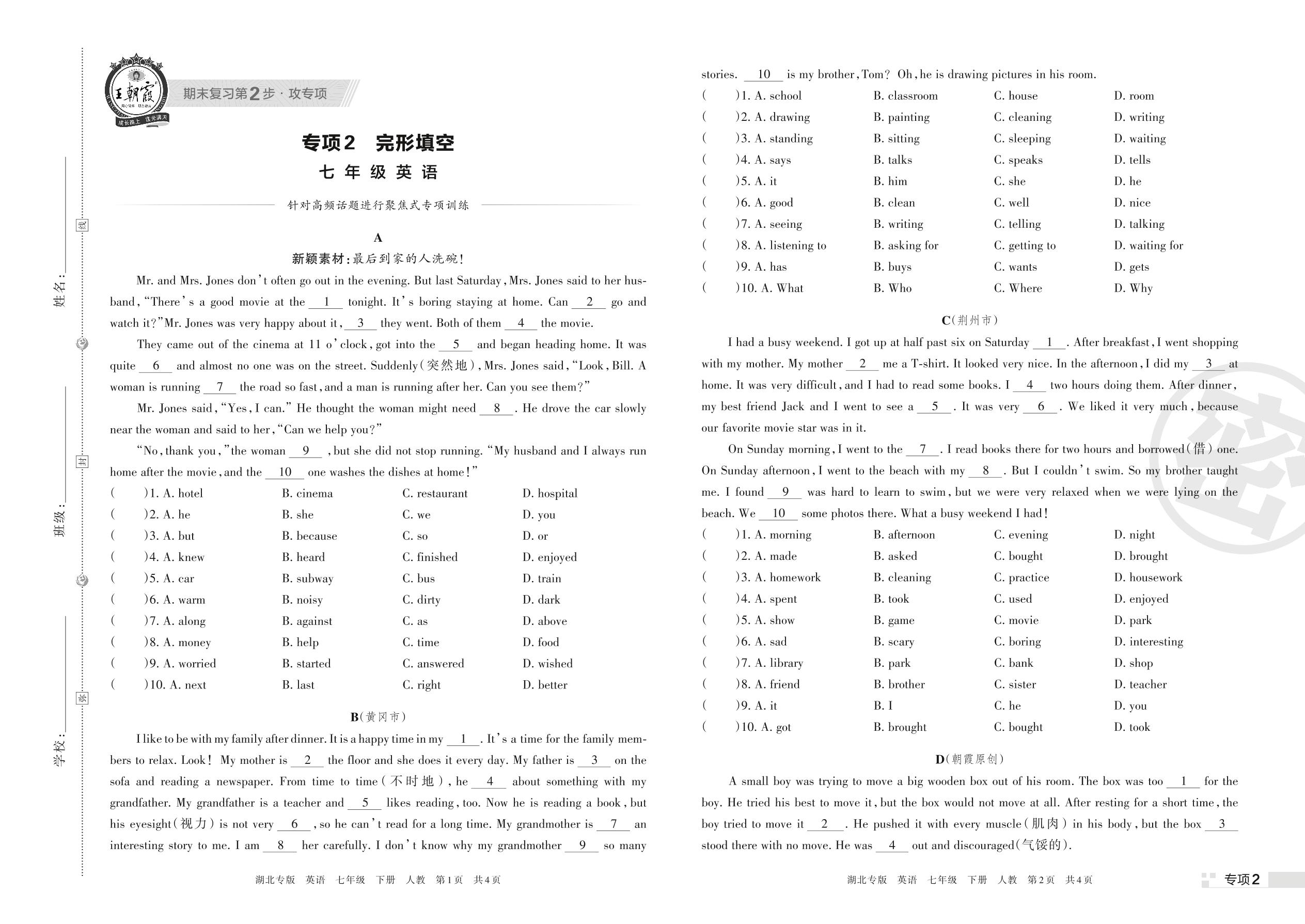 王朝霞期末专项卷——完形填空七年级下册英语(人教版)_R220319140623721【2】