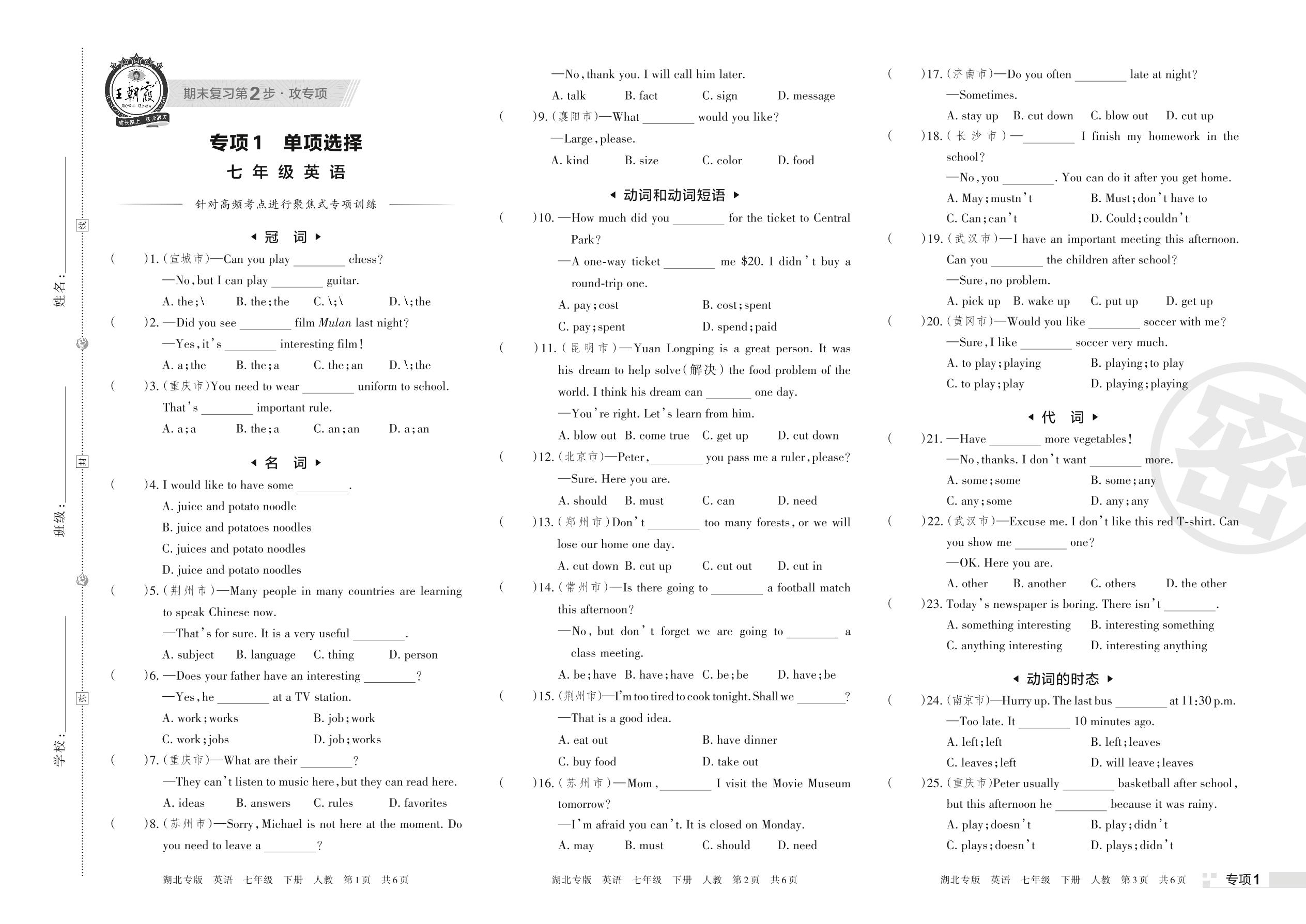 王朝霞期末专项卷——单项选择七年级下册英语(人教版)【1】