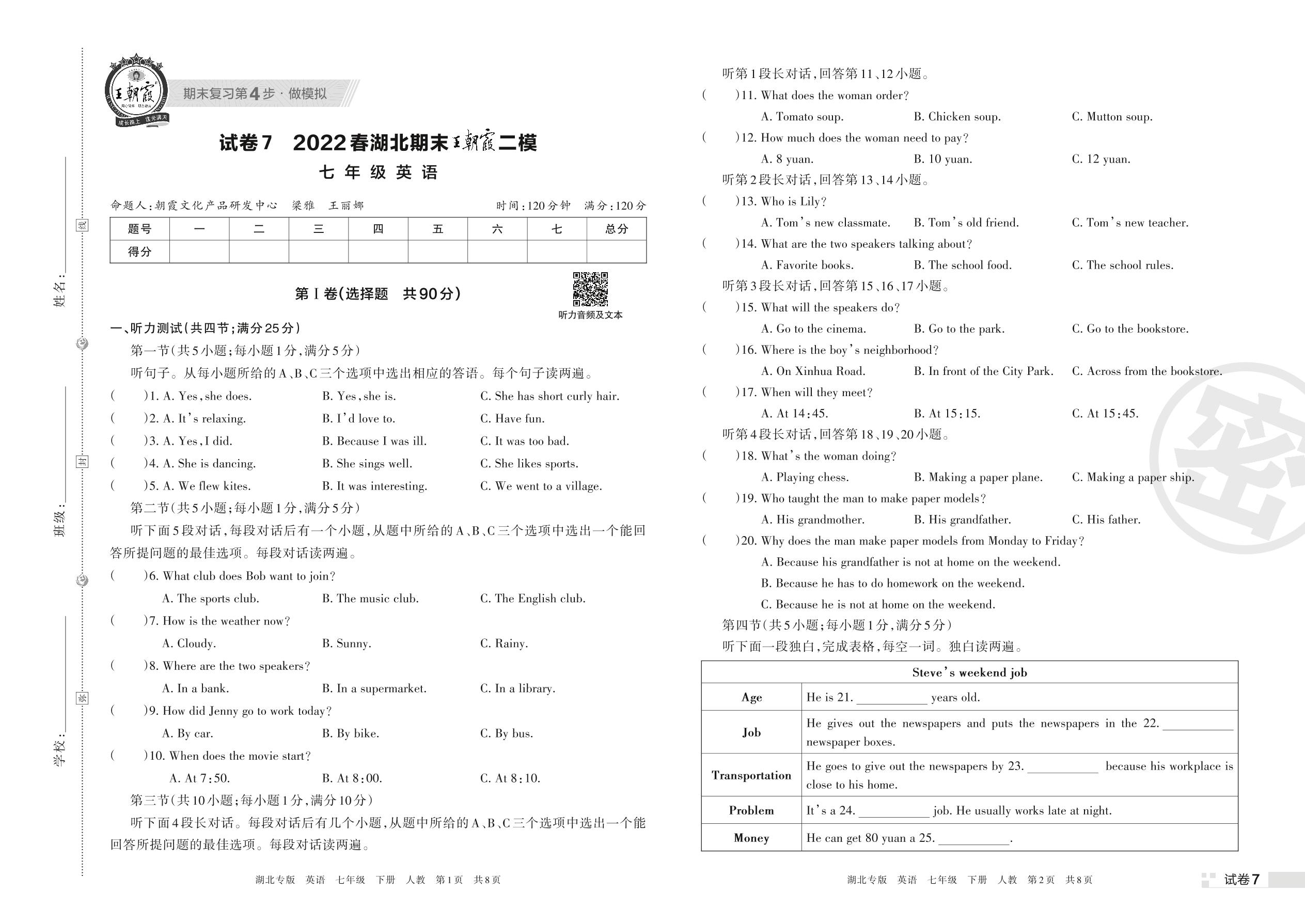 王朝霞期末模拟卷七年级下册英语(人教版)_R220319140624419【7】