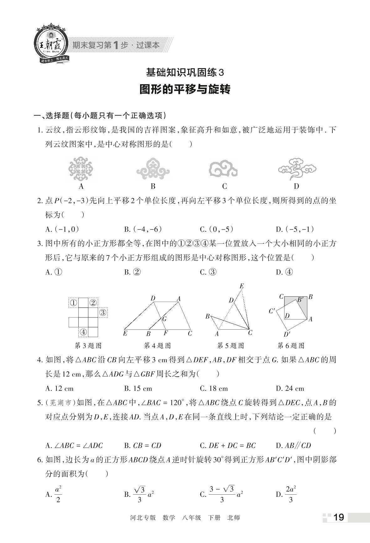 王朝霞期末过课本——基础知识巩固练3 图形的平移与旋转八年级下册数学(北师版)