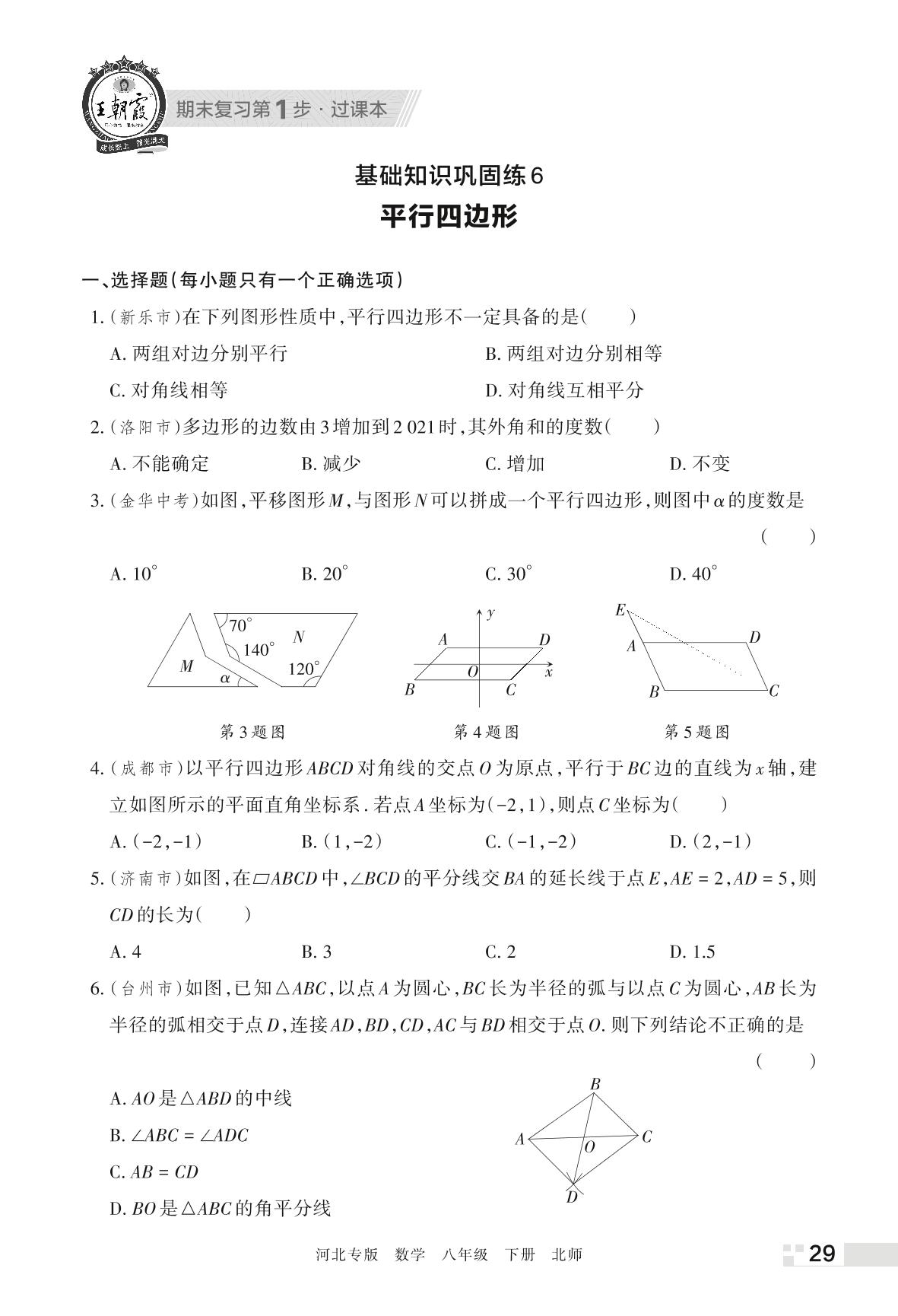 王朝霞期末过课本——基础知识巩固练6 平行四边形八年级下册数学(北师版)