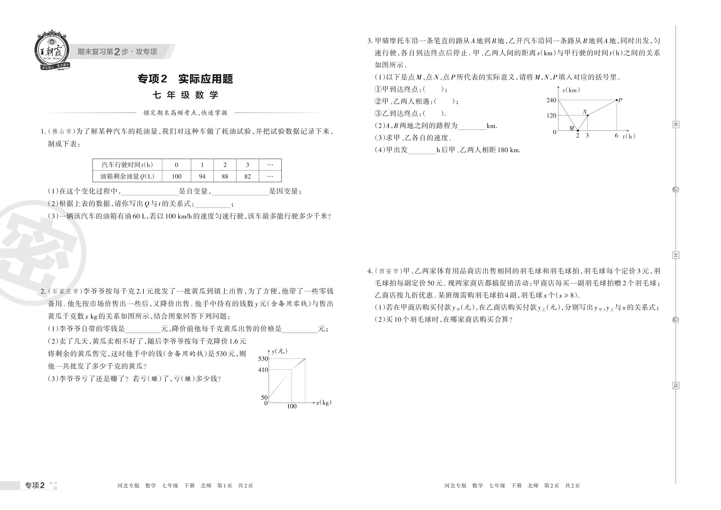 王朝霞期末专项卷——实际应用题七年级下册数学(北师版)【2】