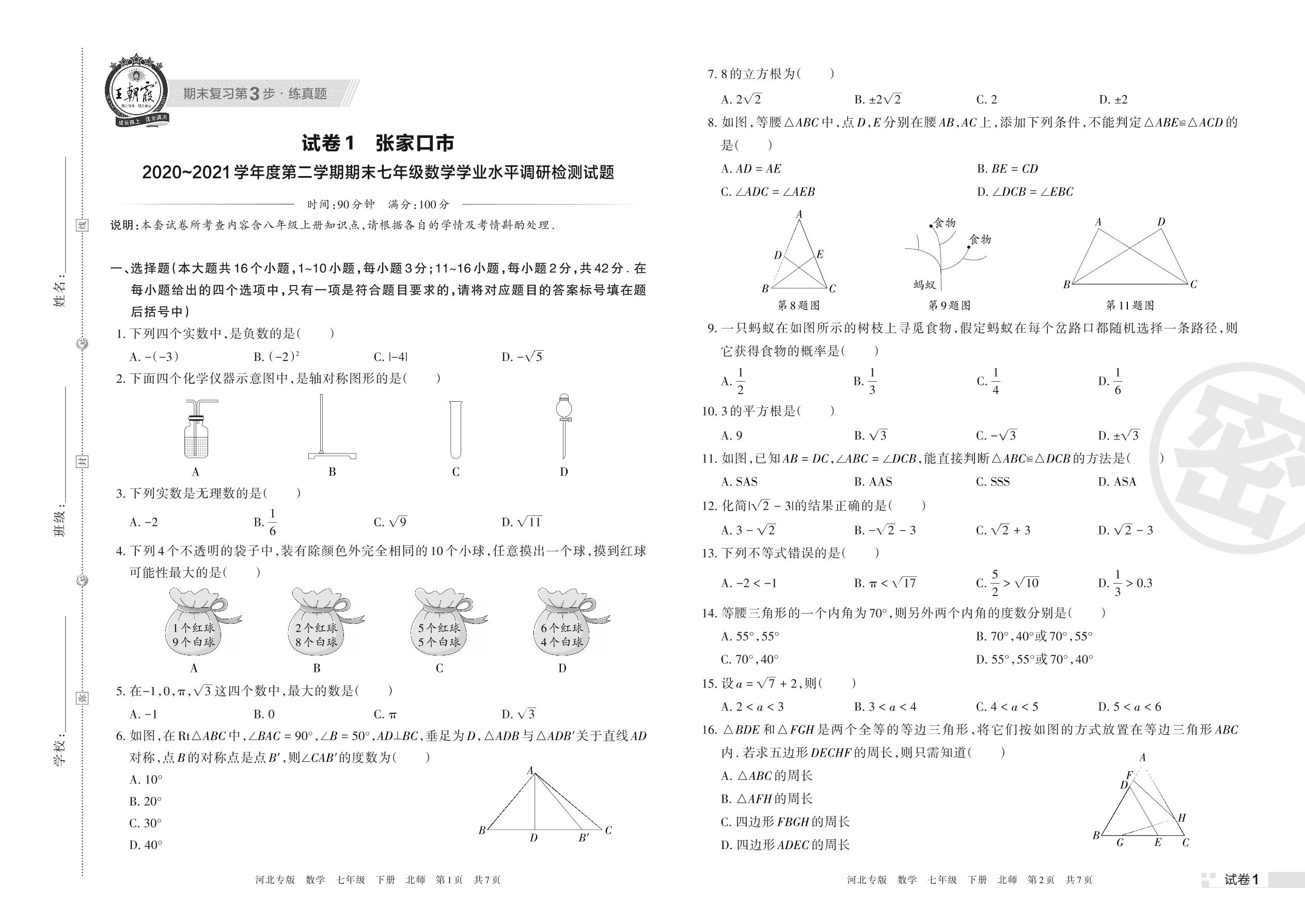 张家口市2020~2021学年度第二学期期末七年级数学学业水平调研检测试题(北师版)【1】