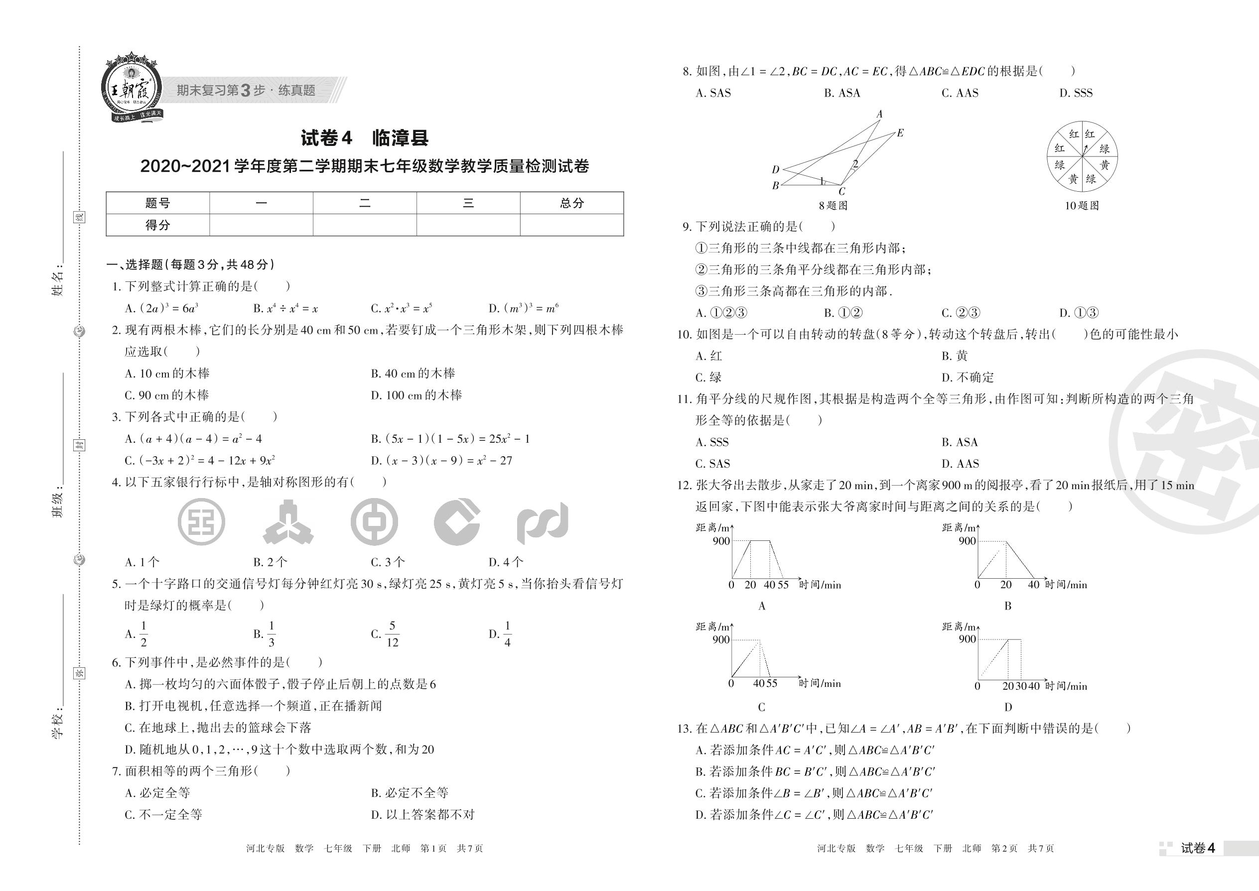 临漳县2020~2021学年度第二学期期末七年级数学教学质量检测试卷(北师版)【4】