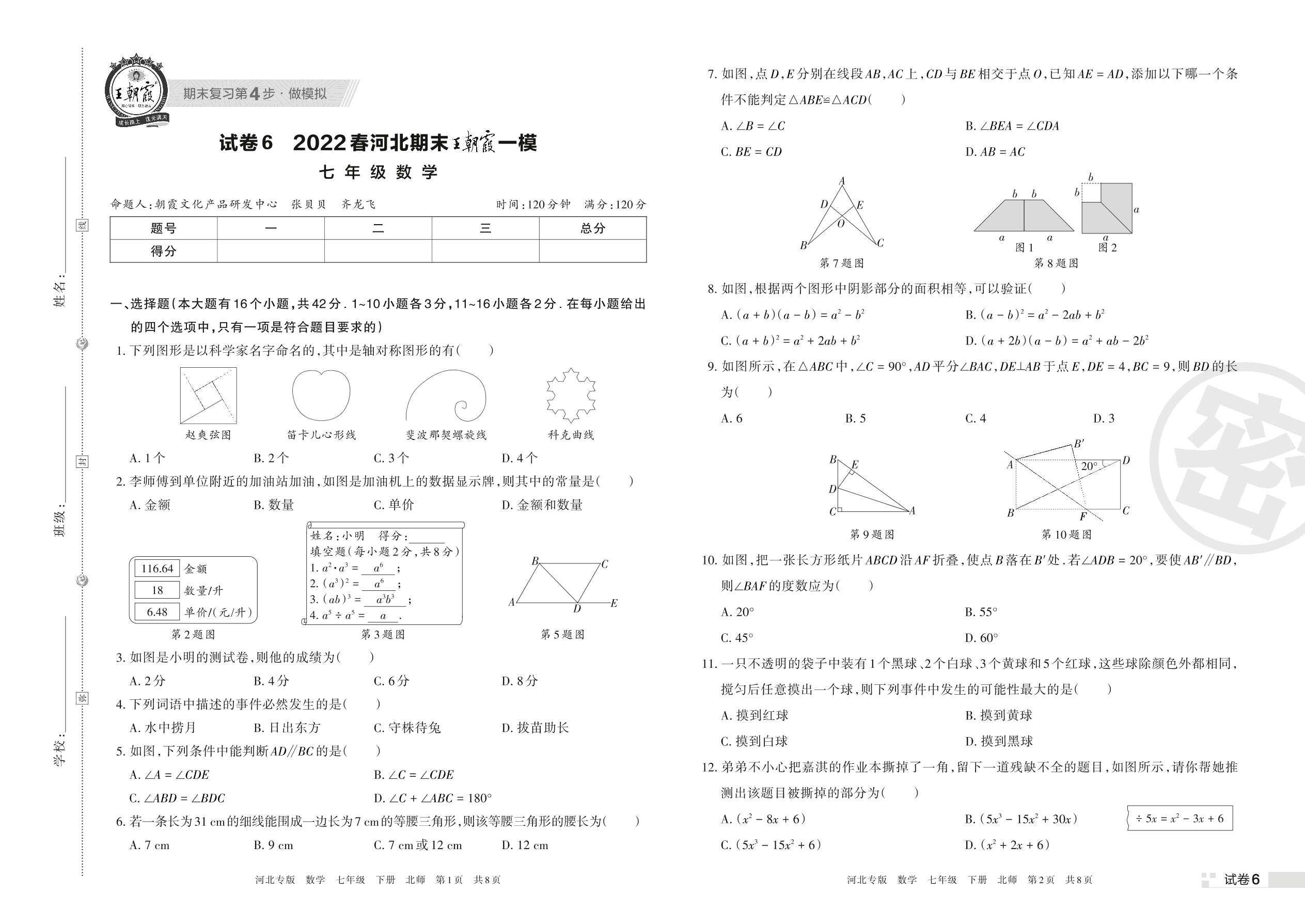 王朝霞期末模拟卷七年级下册数学(北师版)【6】