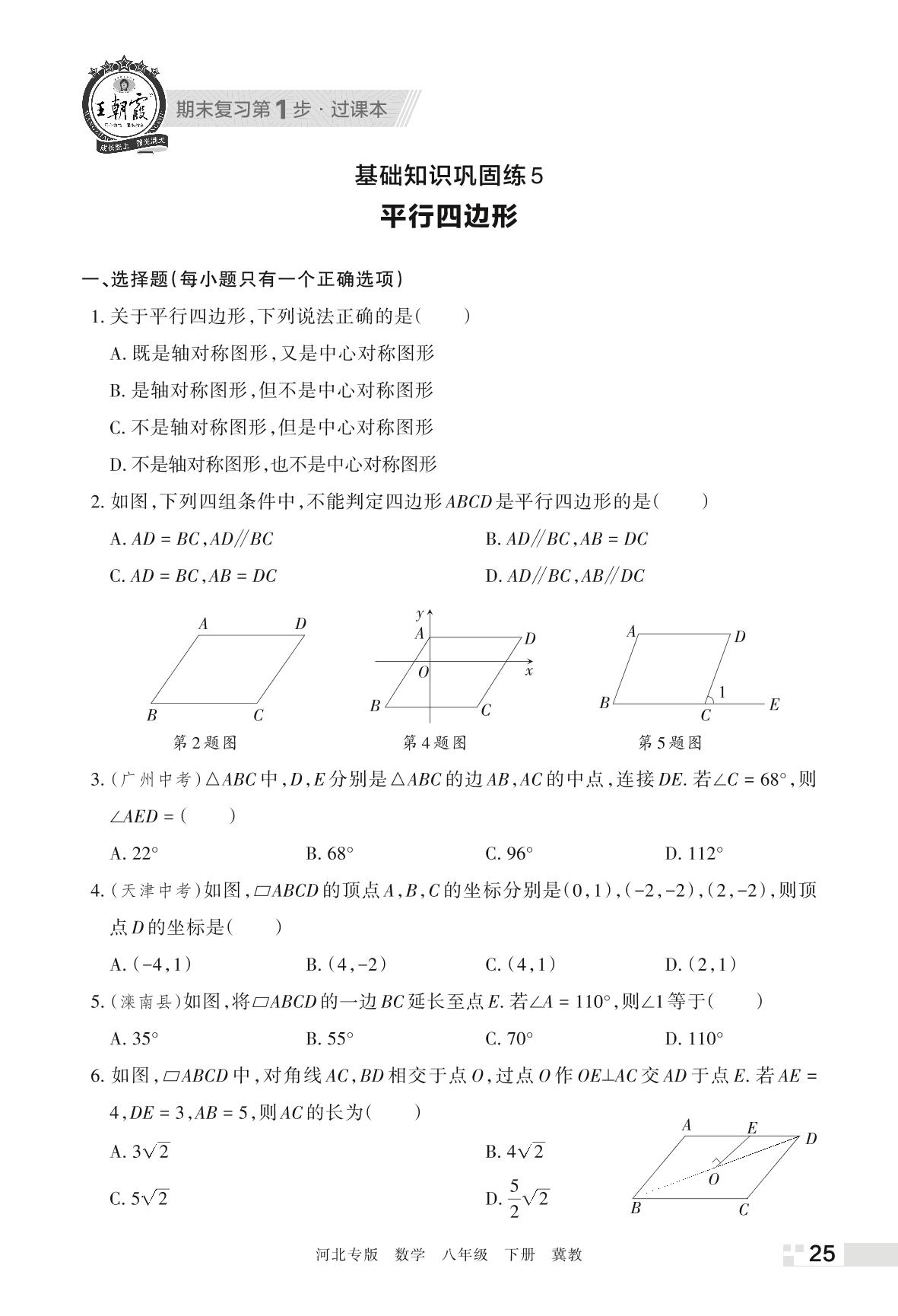 王朝霞期末过课本——基础知识巩固练5 平行四边形八年级下册数学(冀教版)