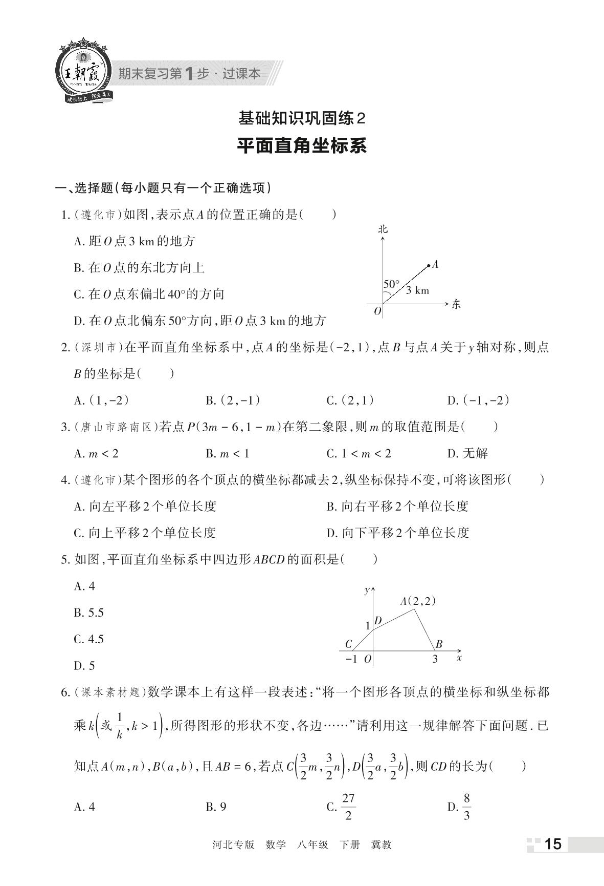 王朝霞期末过课本——基础知识巩固练2 平面直角坐标系八年级下册数学(冀教版)