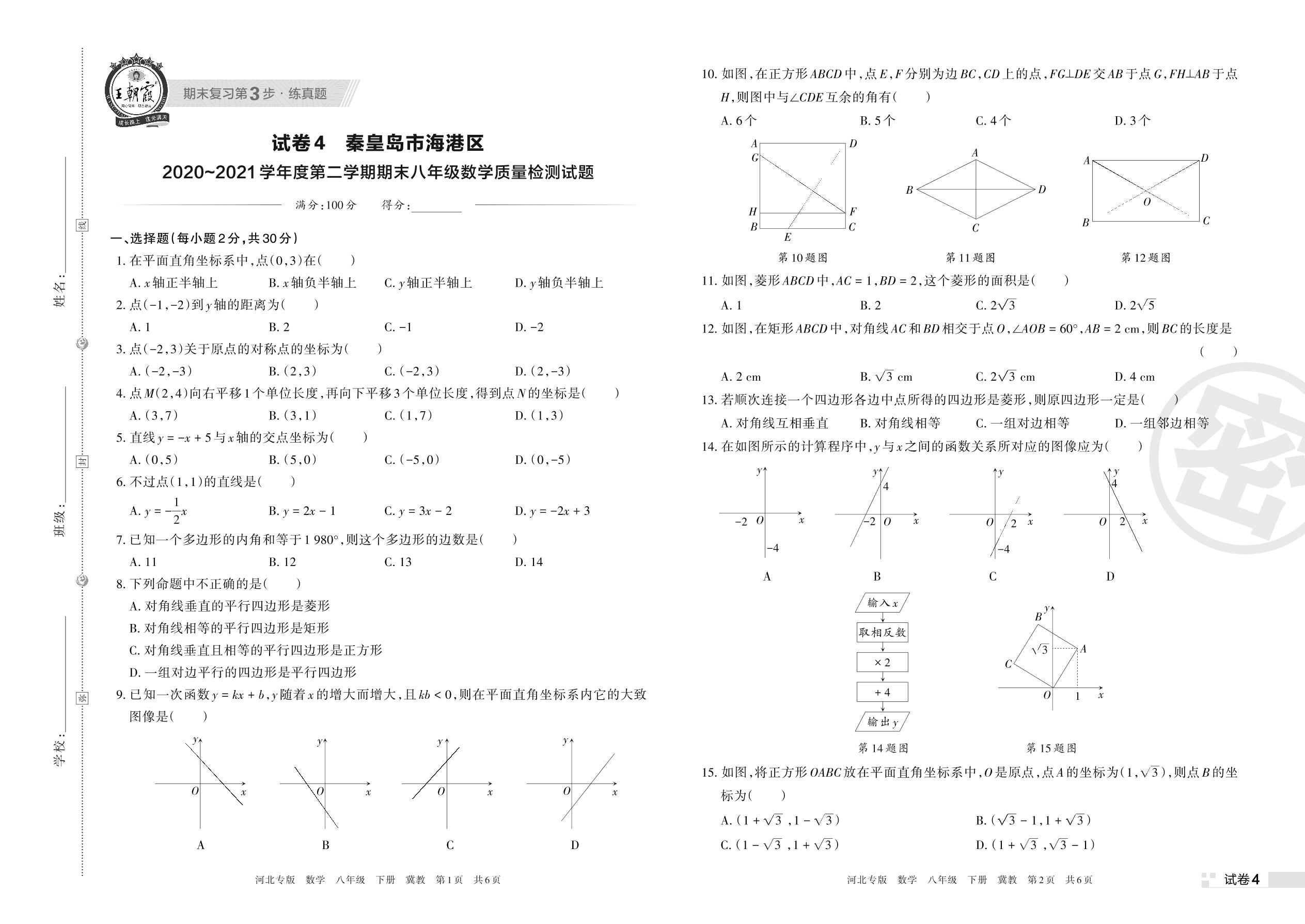 秦皇岛市海港区2020~2021学年度第二学期期末八年级数学质量检测试题(冀教版)【4】