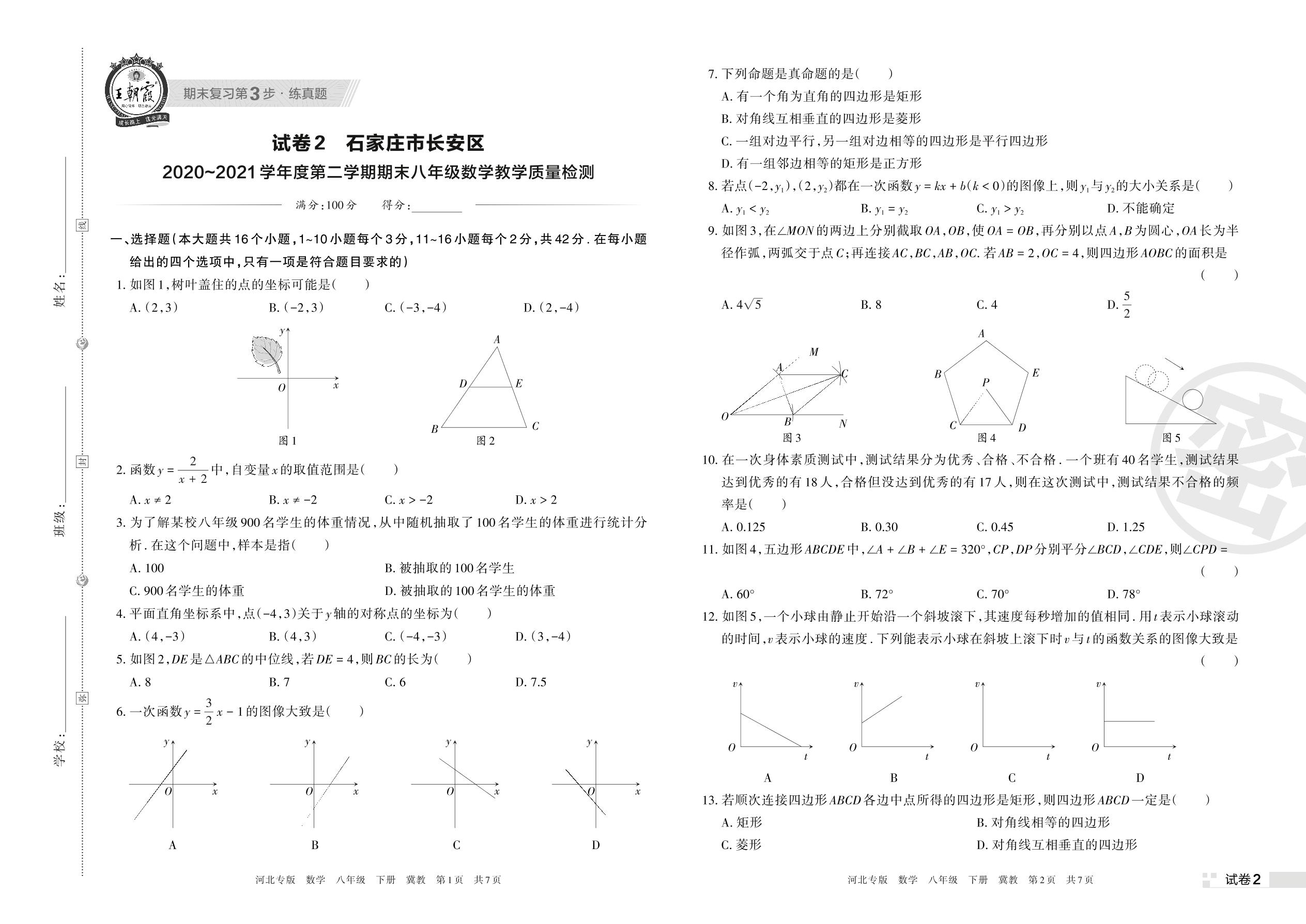 八年级数学冀教版下册期末卷