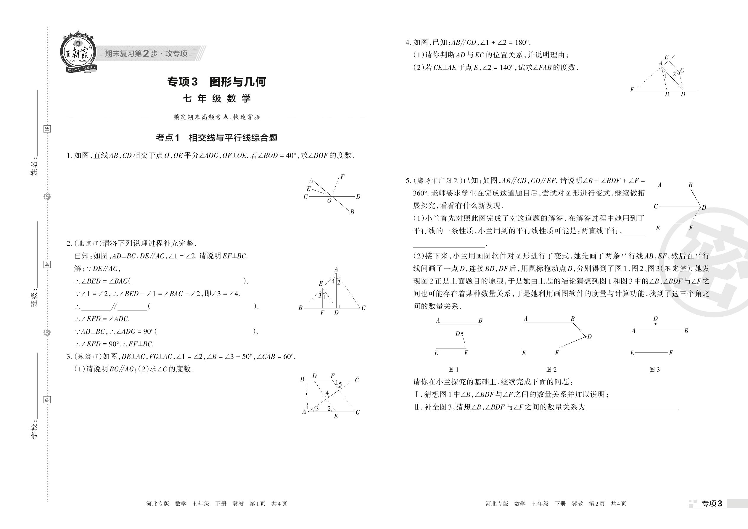 王朝霞期末专项卷——图形与几何七年级下册数学(冀教版)【3】