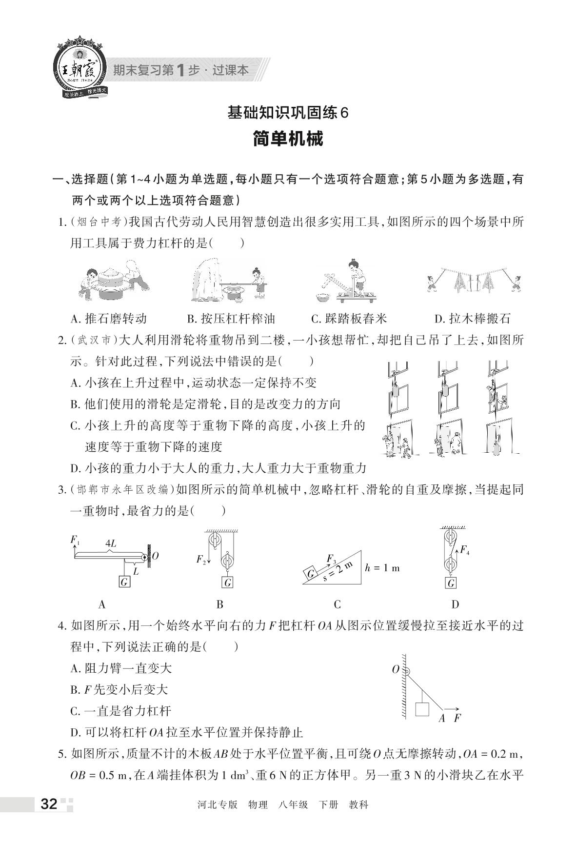 王朝霞期末过课本——基础知识巩固练6 简单机械八年级下册物理(教科版)