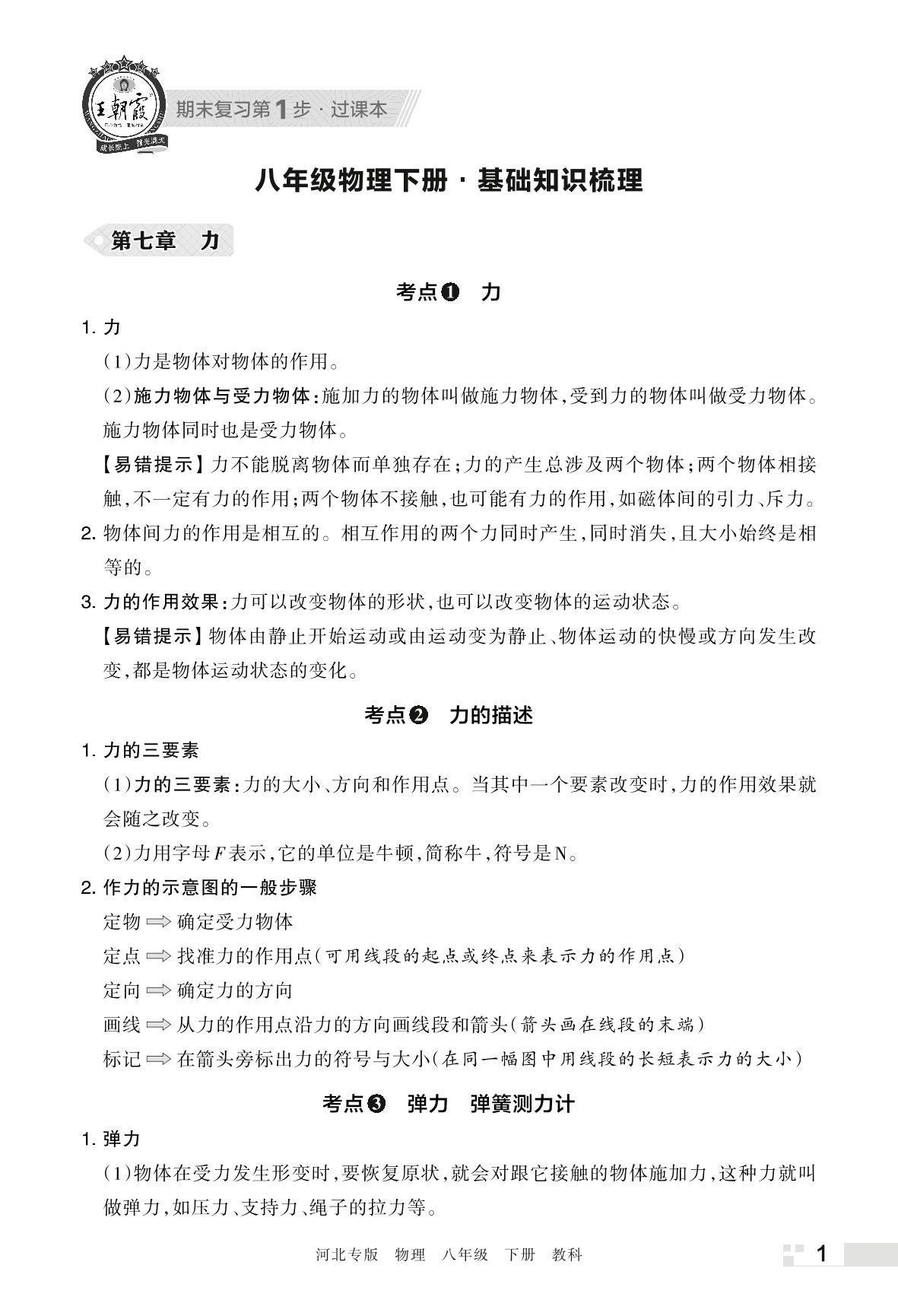 王朝霞期末过课本——基础知识梳理八年级下册物理(教科版)