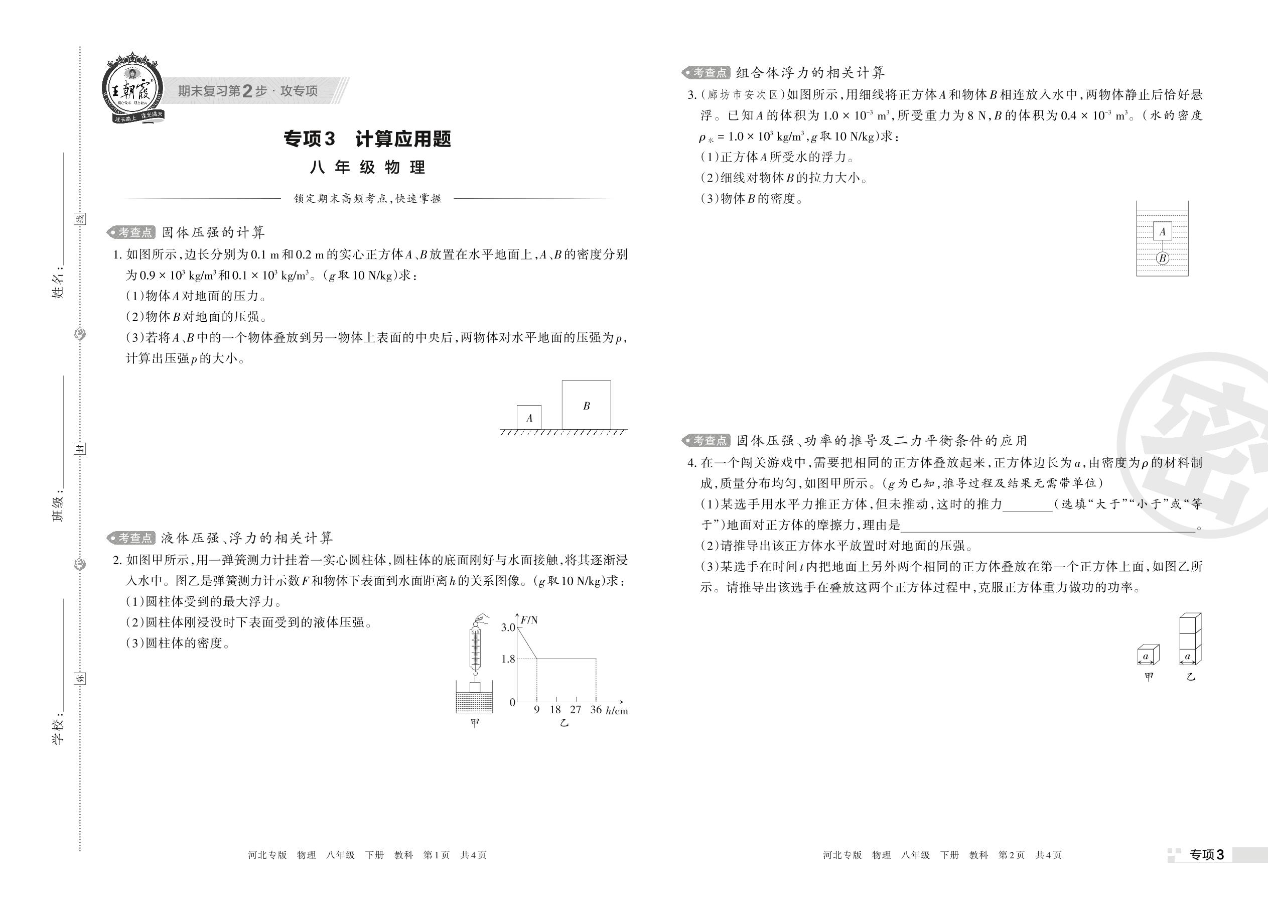 王朝霞期末专项卷——计算应用题八年级下册物理(教科版)【3】