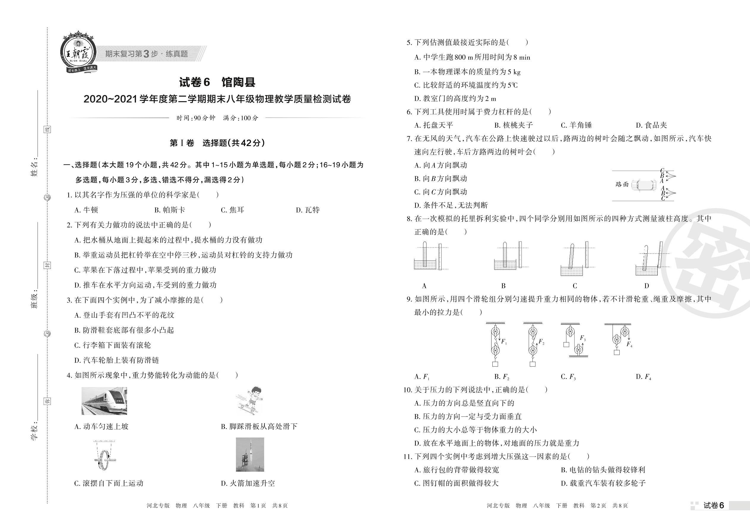 馆陶县2020~2021学年度第二学期期末八年级物理教学质量检测试卷(教科版)【6】