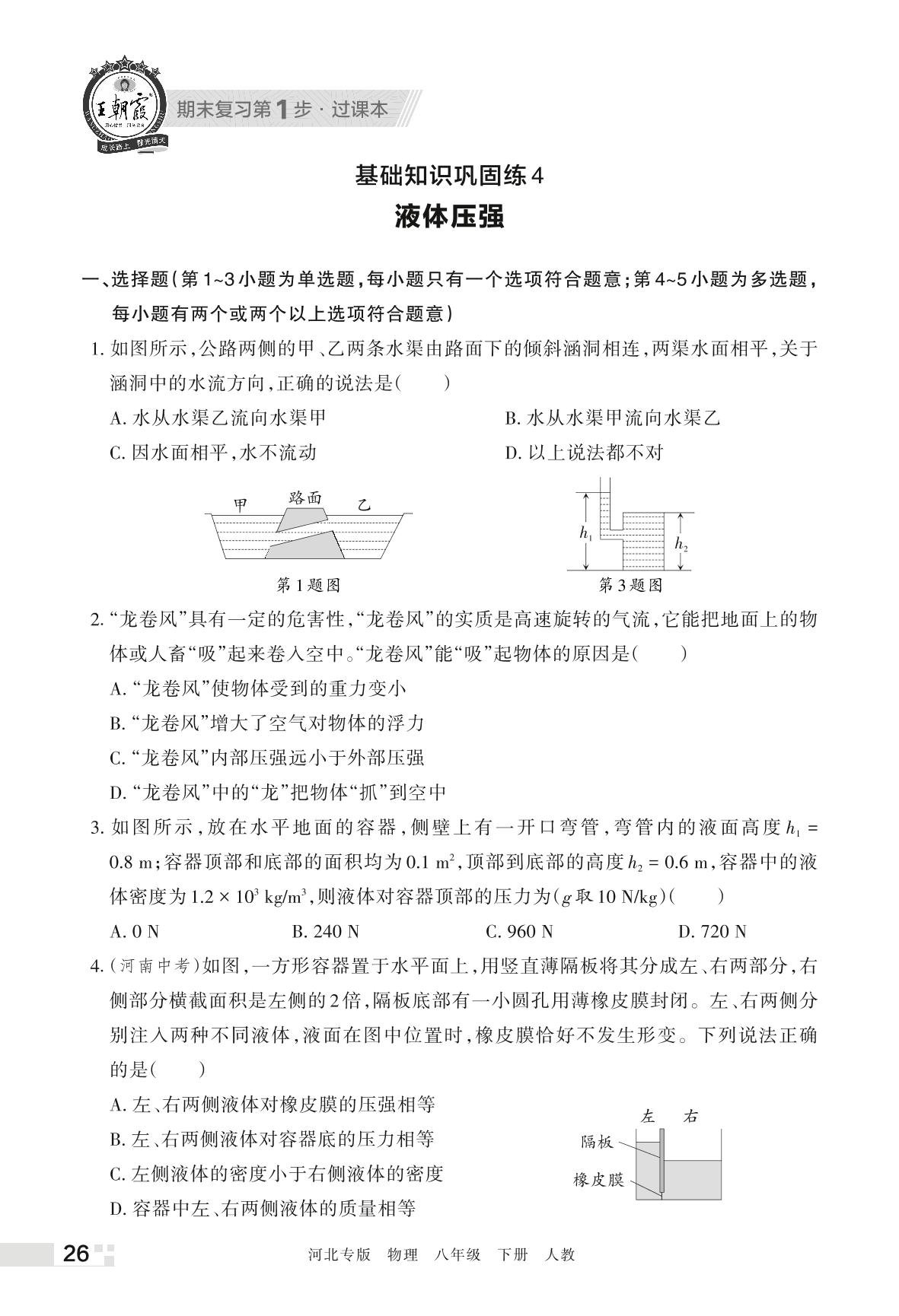 王朝霞期末过课本——基础知识巩固练4 液体压强八年级下册物理(人教版)_R220321153942982