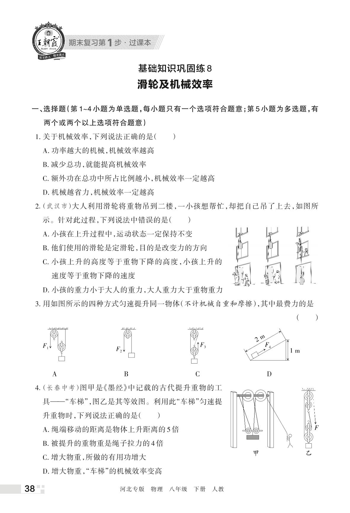 王朝霞期末过课本——基础知识巩固练8 滑轮及机械效率八年级下册物理(人教版)_R220321153942868