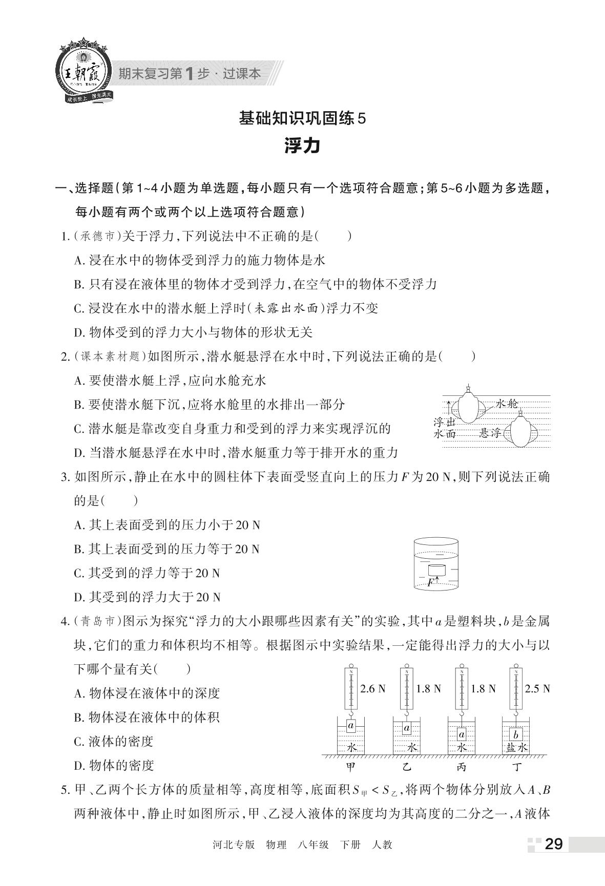 王朝霞期末过课本——基础知识巩固练5 浮力八年级下册物理(人教版)_R220321153943372