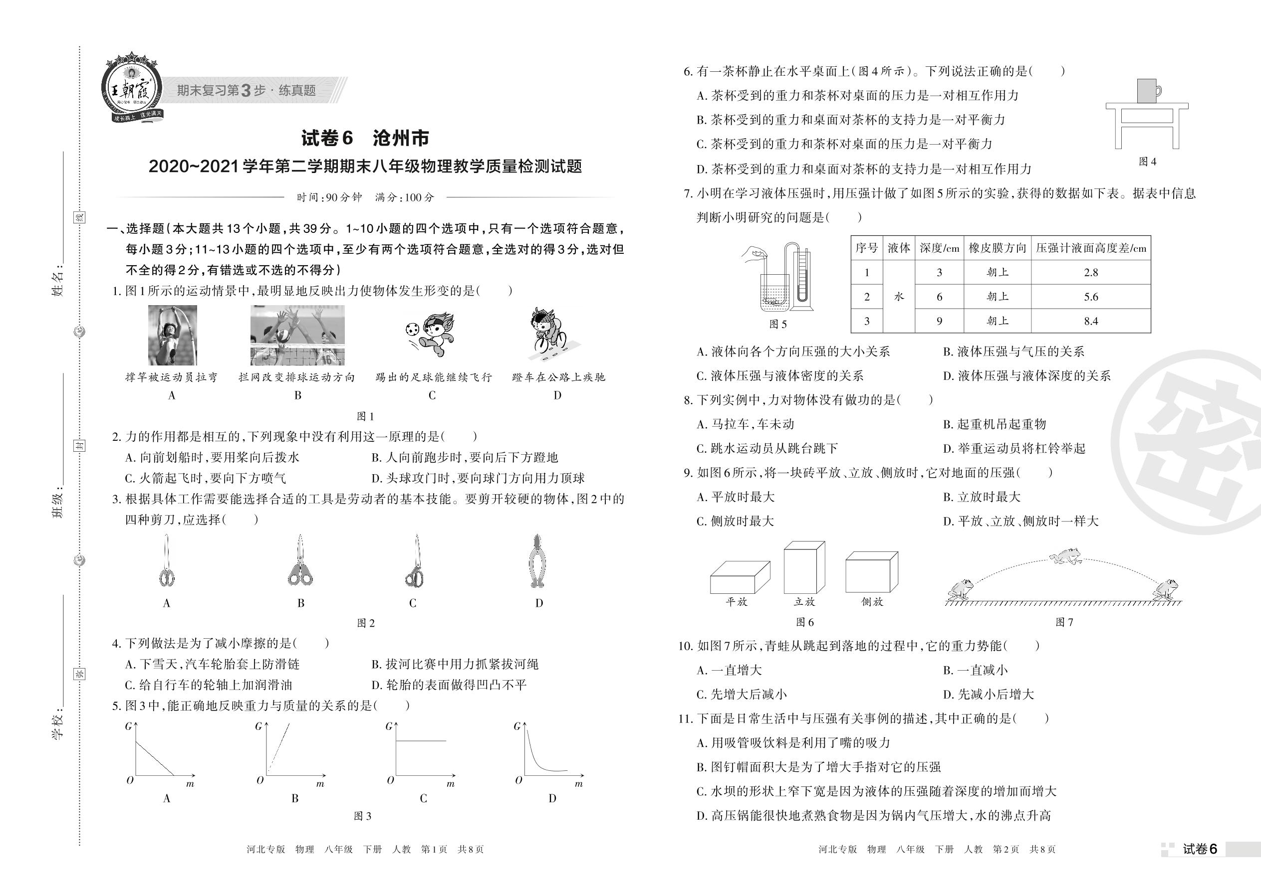 沧州市2020~2021学年第二学期期末八年级物理教学质量检测试题(人教版)【6】