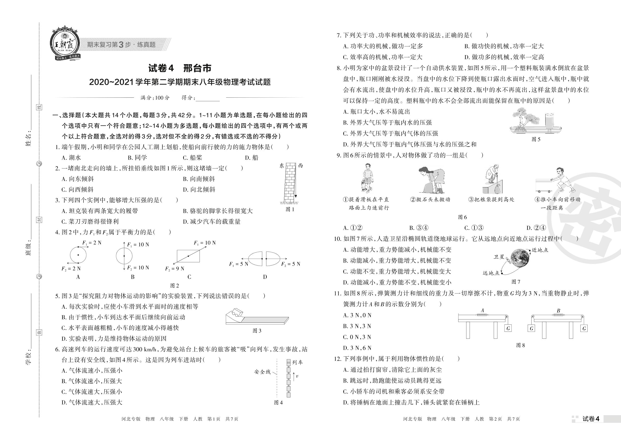 邢台市2020~2021学年第二学期期末八年级物理考试试题(人教版)【4】