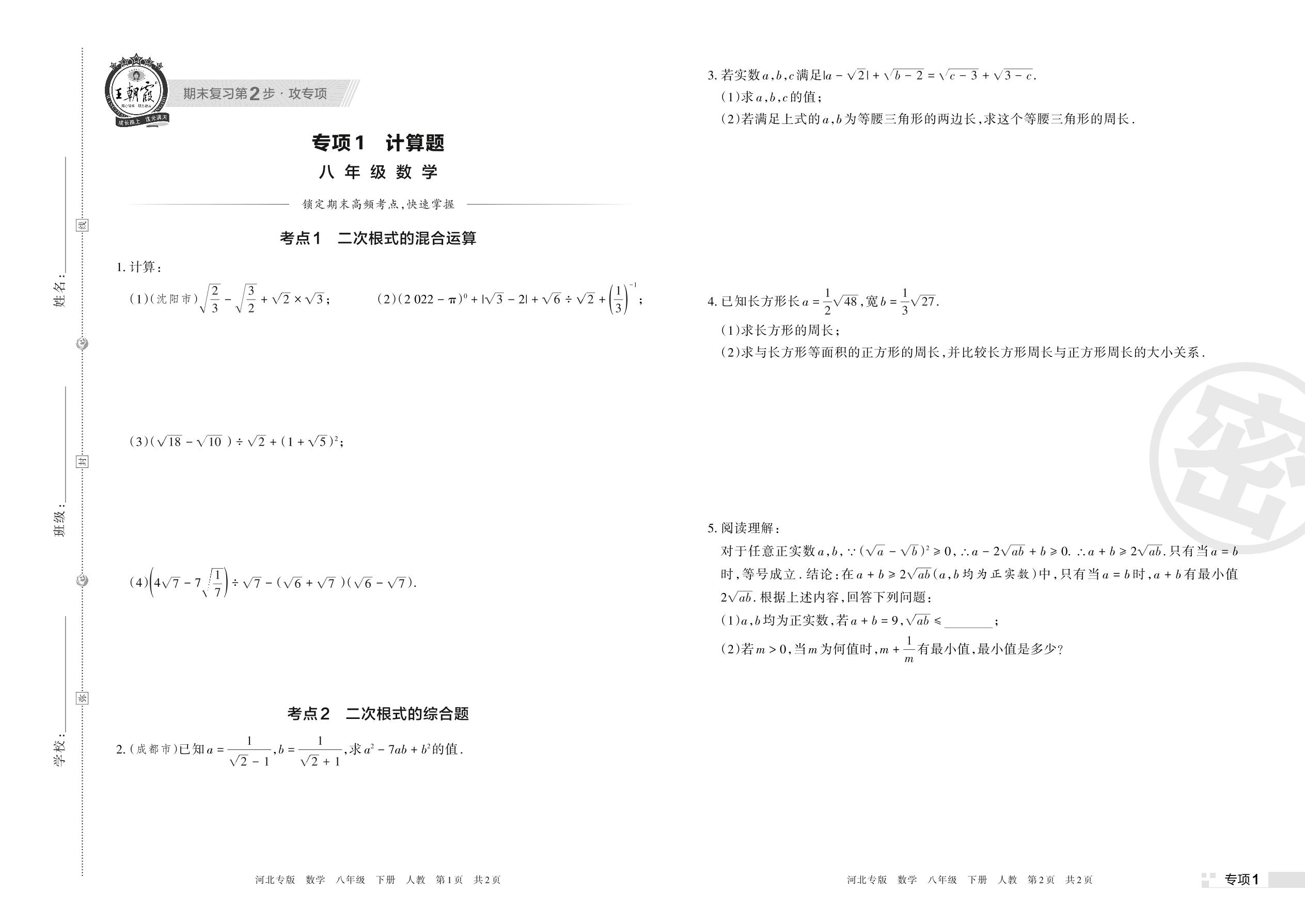王朝霞期末专项卷——计算题八年级下册数学(人教版)_R220321160022260【1】