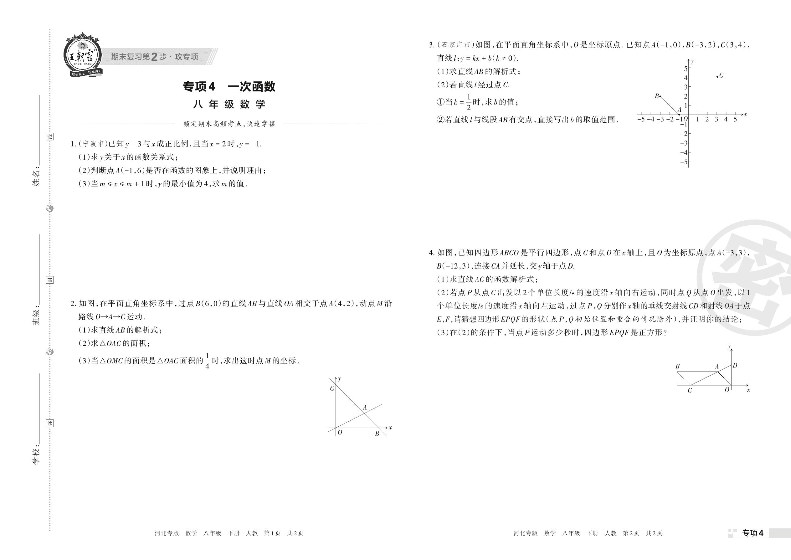 王朝霞期末专项卷——一次函数八年级下册数学(人教版)_R220321160022059【4】